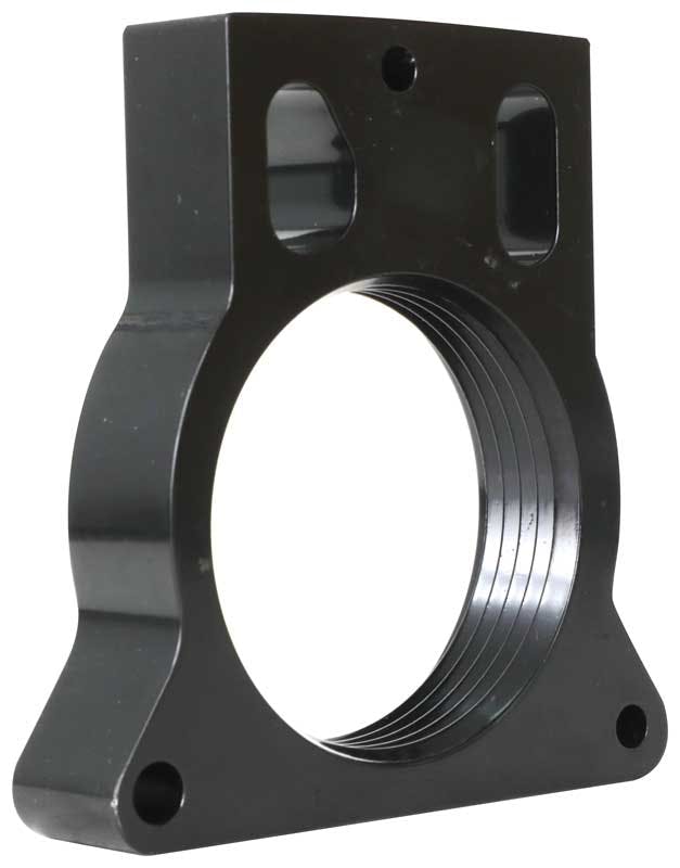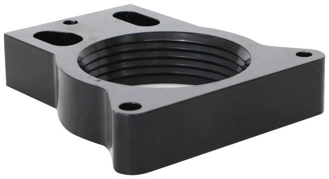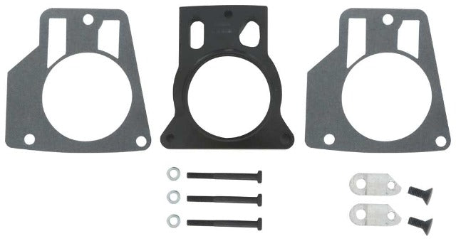 The AIRAID Throttle Body Spacer is designed to enhance mid-range torque using a patented Helix Bore which spins intake air going through the throttle body spacer. Includes mounting hardware.