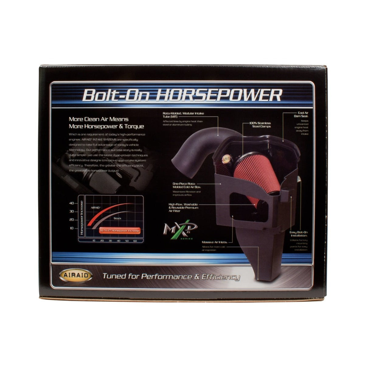 AIRAID Air Box Systems are engineered to give your engine larger amounts of cooler air to produce more horsepower and torque. The Cold Air Dam panels act as a heat shield to protect intake air from engine bay heat.