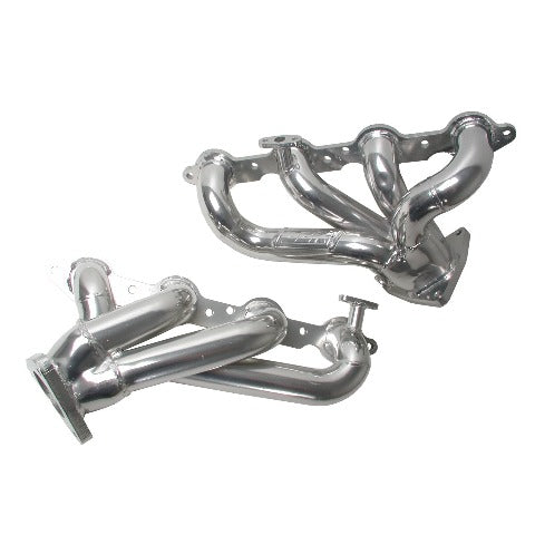 These BBK Performance shorty tuned Length exhaust Headers are designed and constructed as direct fit replacements for all 01-02 Camaro and Firebird LS1 applications. Each header is manufactured with 1-5/8 CNC mandrel bent tubing that offers unrestricted exhaust flow for increased horsepower and torque over factory OEM manifolds. BBK tuned Length headers offer improved scavenging waves for better combustion, which leads to improved performance and fuel economy over stock or equal Length headers. As with all BBK Performance exhaust headers they feature a 3/8 laser cut flange for additional strength and a guaranteed leak free fit. All headers are robotically and precision hand welded and then pressure tested to ensure years of reliability and performance in the real world. All BBK exhaust headers are available in a bright chrome or polished silver ceramic coated finish and include new exhaust header gaskets, header bolts and hardware to complete the installation.