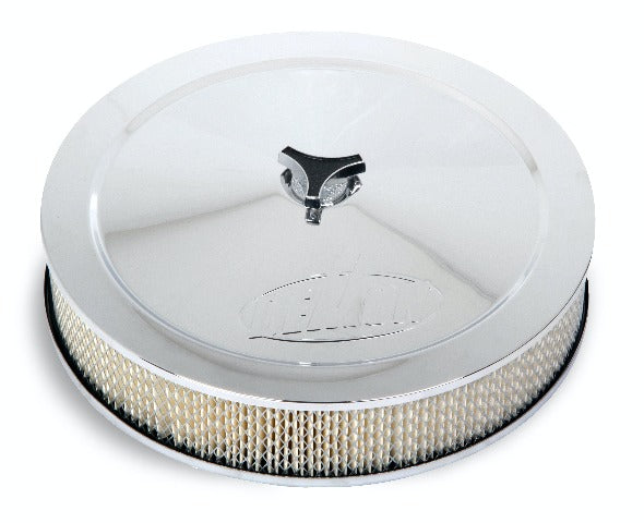 Air Cleaner Assembly; Flat Base; 14 x 3; Fits 4150 Series; Compatible With Gas; White Paper; Chrome Finish;