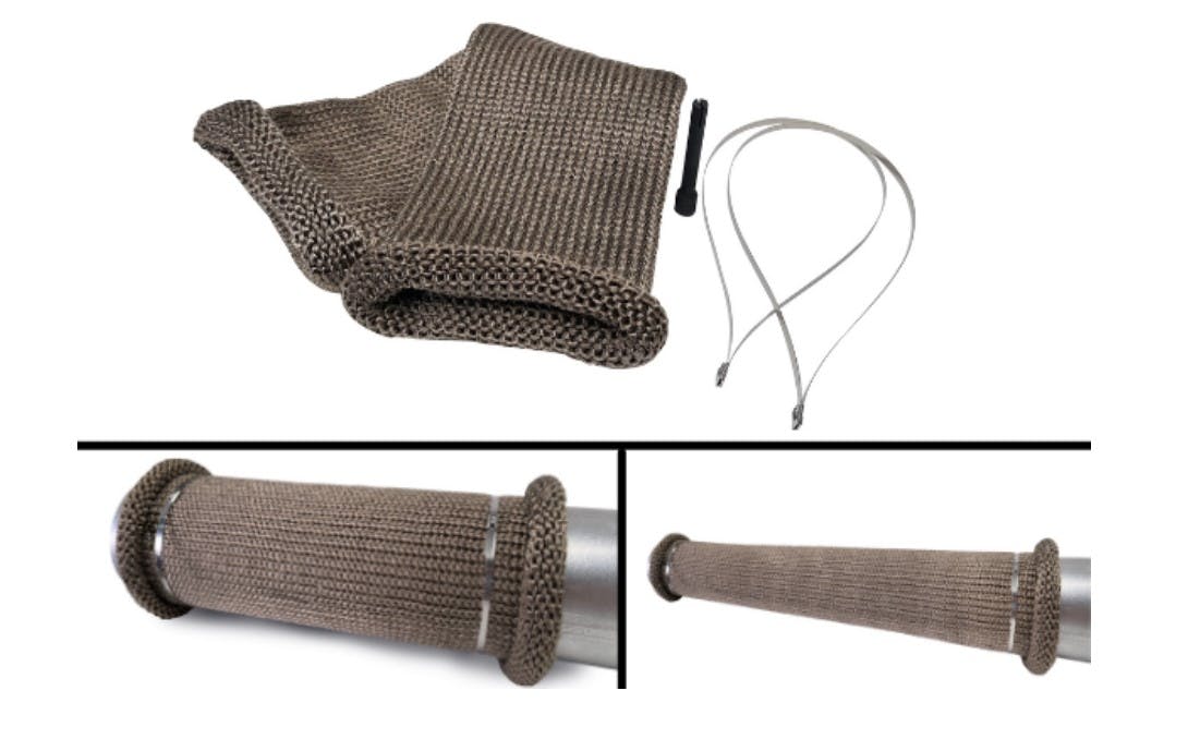 Titanium Knitted sleeves are available in different precut lengths and by the foot sizes. They have a maximum temperature rating of 1800°F with a continuous rating of 1382°F. Perfect for larger exhaust pipes as they can expand up to 1.5 times normal diameter allowing to install over flanges and sensor threads. You can cut to length and simply roll the ends. Protect components and keep heat from transferring into the cabins.