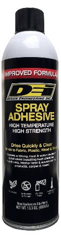DEI's Improved Formula Hi-Temp Spray Adhesive is a very aggressive, high build pressure sensitive adhesive designed to bond porous substrates while maintaining a high level of tack. Useful for bonding for Foam, Fabric, Metals, Wood and of course DEI's heat and sound barrier materials. The spray is a web pattern for excellent coverage on all materials.