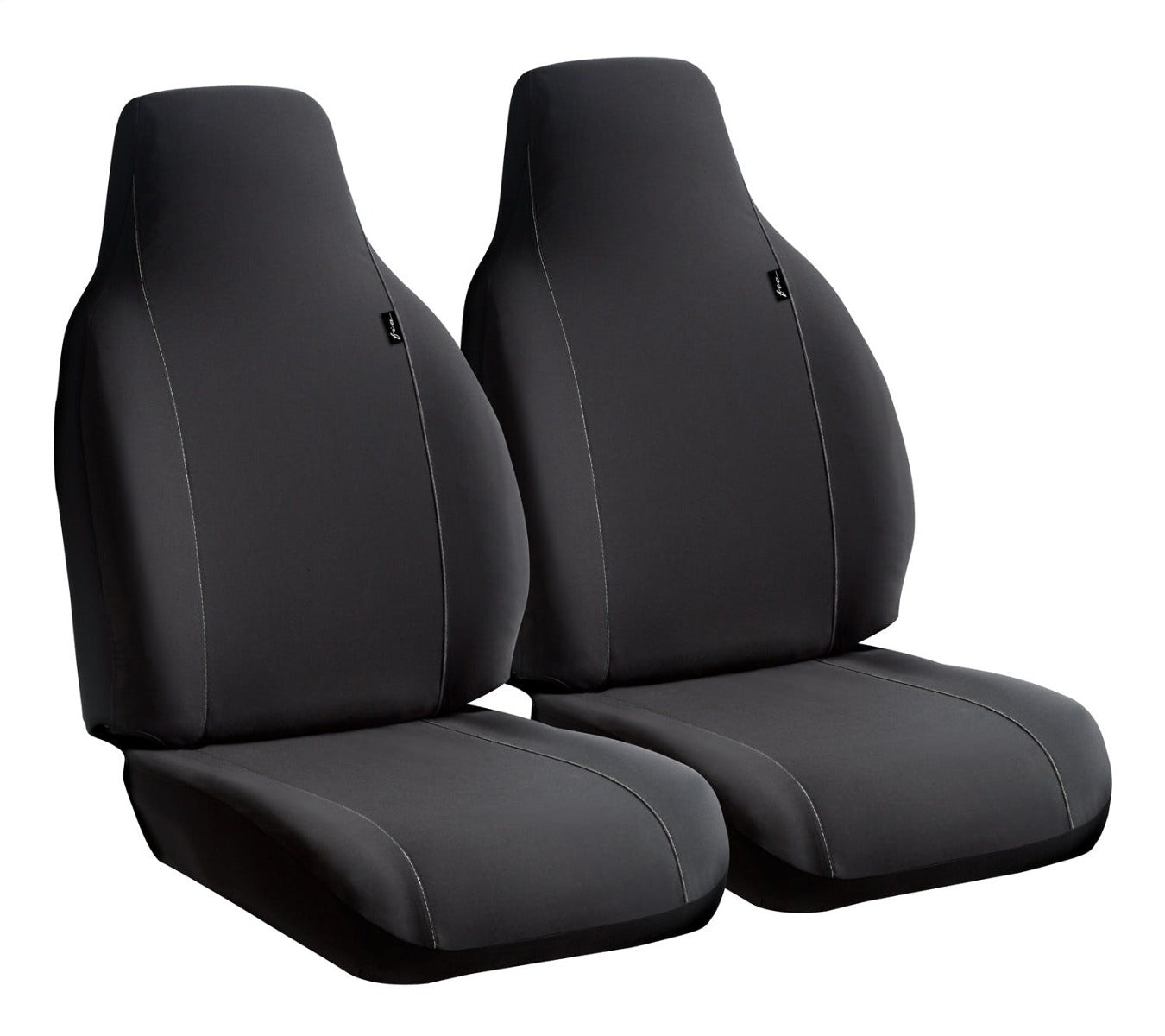 SP80 Series Seat Protector semi-custom fit car seat covers are engineered for the ultimate in seat protection for heavy commercial use. An advanced design creates a dynamic state-of-the-art custom interior. On vehicle testing of all Fia custom fit seat covers ensures an exact fit each time. Super- Grip is the slip resistent fastening system that incorporates quick release belt and buckle fasteners, zippers and velcro, making installation quick and easy. The form fit wrap around design that is accomplished through multi-directional stretch trim material molds the cover to the contours of your seat. The commercial grade double stitched poly-cotton material is hand washable as well as lightfast and colorfast. Available in Black and Gray.