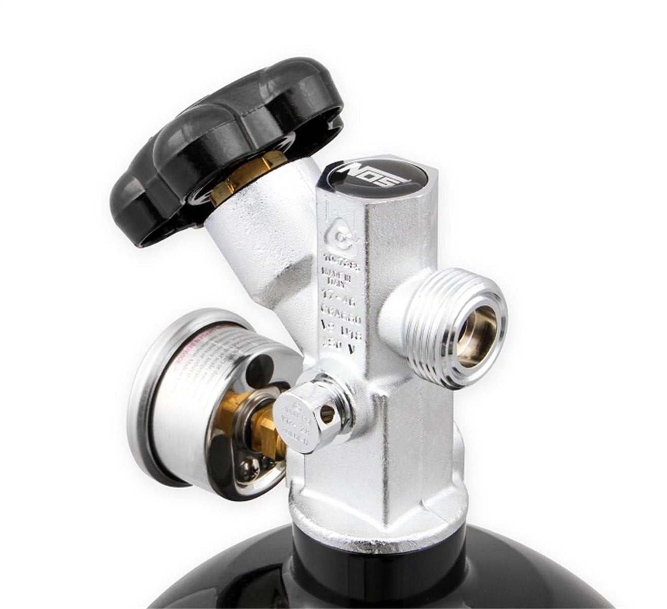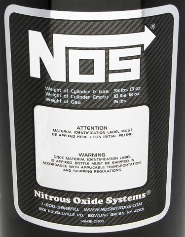 NOS now offers 5, 15, and 20 lb. nitrous bottles in Black with a distinctive black carbon and chrome bottle decal. Not only are we offering these bottles in gloss black, but we have reintroduced the original SUPER HI-FLO nitrous valve. Along with the Super Hi-Flo valve is a screw-in 3/8 I.D. siphon tube, and new black faced nitrous pressure gauge.