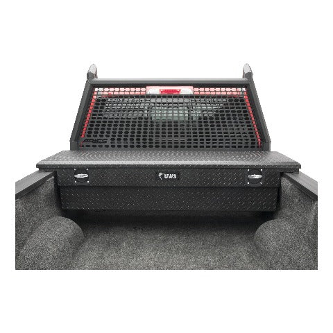 UWS Secure Lock crossover truck tool boxes provide the ultimate in security and convenience, offering you a truck bed tool box unlike any other. It features a unique locking system, an innovative interior and a highly durable design. The Secure Lock truck box operates with two lockable twist handles. These handles are key-operated and allow you to lock the truck tool box from either the driver or passenger side. The two locks also give you the option to lock both sides for maximum security. The lid of the Secure Lock tool box is particularly strong, featuring our patented RigidCore foam-filled design. This gives the lid greater structural integrity and resists bending and warping. Like most UWS tool boxes, this box also features extra-thick aluminum construction, and the tub is welded into a single piece to ensure waterproof protection for your items. It is also equipped with a MicroSeal gasket to keep out dust, grime, moisture and insects. To protect the interior of the Secure Lock tool box, it features a heavy-duty BedRug liner. This protective mat resists dents and damage to the box itself and to your tools and other items, and it helps trap dust and dirt for easy cleanup. The UWS Secure Lock truck tool box offers excellent organization for your tools, featuring an included three-compartment tray and built-in screwdriver holders. The lid is able to open to a complete 90 degrees for easy access to the interior contents, and it is equipped with self-closing struts that automatically close the lid with a slight manual pull, securing the box when your hands are full. The Secure Lock truck tool box is quick and easy to install, and it is available in multiple sizes to provide the perfect fit for your own unique truck bed. Like all UWS products, each Secure Lock crossover truck tool box is proudly assembled right here in the USA for style and long-lasting dependability.