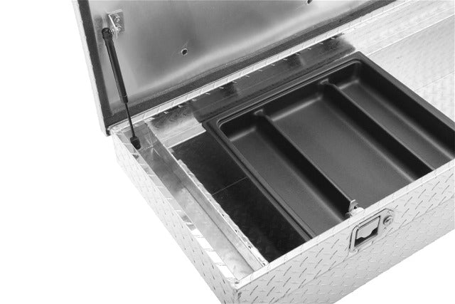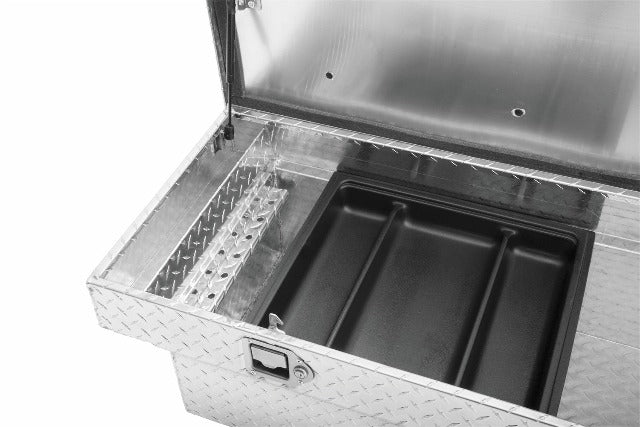 UWS crossover truck tool boxes are the tried-and-true way of keeping your tools organized, on-hand and fully secure no matter where you and your truck roam. Each UWS tool box is built from extra-thick aluminum welded into a single-piece tub. This provides the tool box with reliable strength and helps keep the interior sealed off from the elements. Aluminum construction also makes the box highly resistant to corrosion for long-lasting use. To add even more strength to the crossover truck tool box, the lid features our patented RigidCore foam-filled design. Layered between two sheets of aluminum, this core greatly increases the structural integrity of the lid to prevent bending and warping and to ensure smooth opening and closing. The lid is able to open to a full 90 degrees, providing better access to tools, equipment and other stored items. It also features self-opening struts to make it easy to open the box when your hands are full. To keep out moisture, dirt and even insects, the lid is also fitted with a MicroSeal gasket that seals off the inside of the tool box from the outside elements. UWS crossover truck tool boxes make it easy to keep your tools and other items organized, featuring built-in screwdriver holders and a sliding tool tray. The tool box itself is easy to install and is available in multiple sizes to provide the perfect for your truck and lifestyle. Like all UWS products, each crossover truck tool box is proudly assembled right here in the USA for style and long-lasting dependability.
