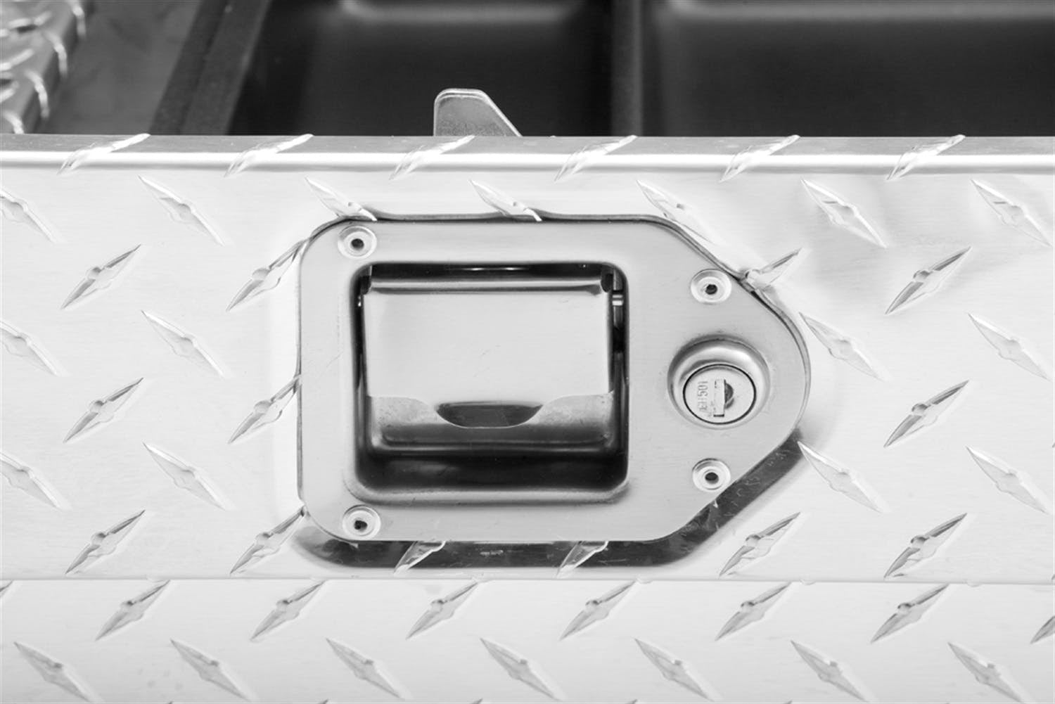 UWS crossover truck tool boxes are the tried-and-true way of keeping your tools organized, on-hand and fully secure no matter where you and your truck roam. Each UWS tool box is built from extra-thick aluminum welded into a single-piece tub. This provides the tool box with reliable strength and helps keep the interior sealed off from the elements. Aluminum construction also makes the box highly resistant to corrosion for long-lasting use. This particular box features a slim-line design, providing adequate clearance for truck beds that have extremely limited space between the wheel wells and truck cab. It also features a low profile, meaning the lid is built lower than our standard lid. This provides a better view out the rear cab window and additional clearance for other items in the truck bed, if needed. To add even more strength to the crossover truck tool box, the lid features our patented RigidCore foam-filled design. Layered between two sheets of aluminum, this core greatly increases the structural integrity of the lid to prevent bending and warping and to ensure smooth opening and closing. The lid is able to open to a full 90 degrees, providing better access to tools, equipment and other stored items. It also features self-opening struts to make it easy to open the box when your hands are full. To keep out moisture, dirt and even insects, the lid is also fitted with a MicroSeal gasket that seals off the inside of the tool box from the outside elements. UWS crossover truck tool boxes make it easy to keep your tools and other items organized, featuring a three-compartment sliding tool tray. The tool box itself is easy to install and is available in multiple sizes to provide the perfect for your truck and lifestyle. Like all UWS products, each crossover truck tool box is proudly assembled right here in the USA for style and long-lasting dependability.