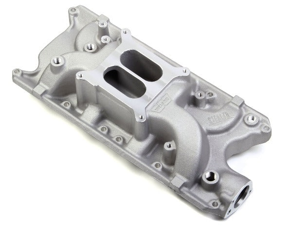 Stealth™ Intake Manifold; Lower; Power Band Idle-6000 RPM; High Rise; Square Carb Mounting Flange; 4.35 in. Front H/5.59 in. Rear Height; No EGR Provisions; Satin Finish;