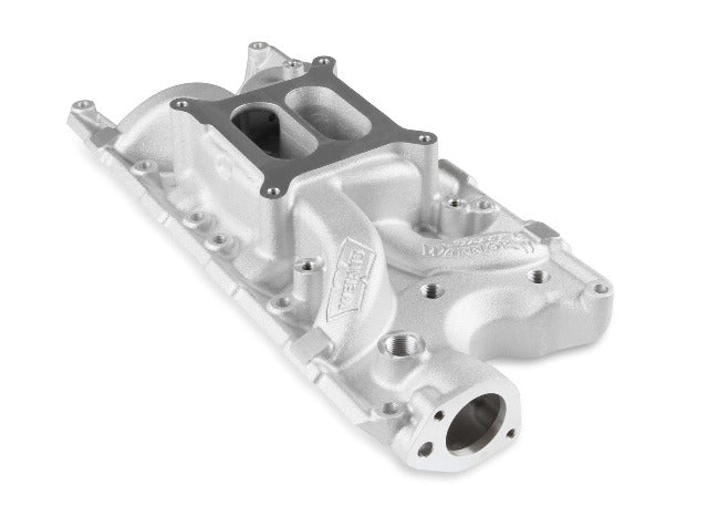Street Warrior™ Intake Manifold; Lower; Power Band Idle-5500 RPM; Low Rise/Dual Plane; Square Bore Carb Mounting Flange; 3.82 in. Front H/4.75 in. Rear Height; Satin Finish;