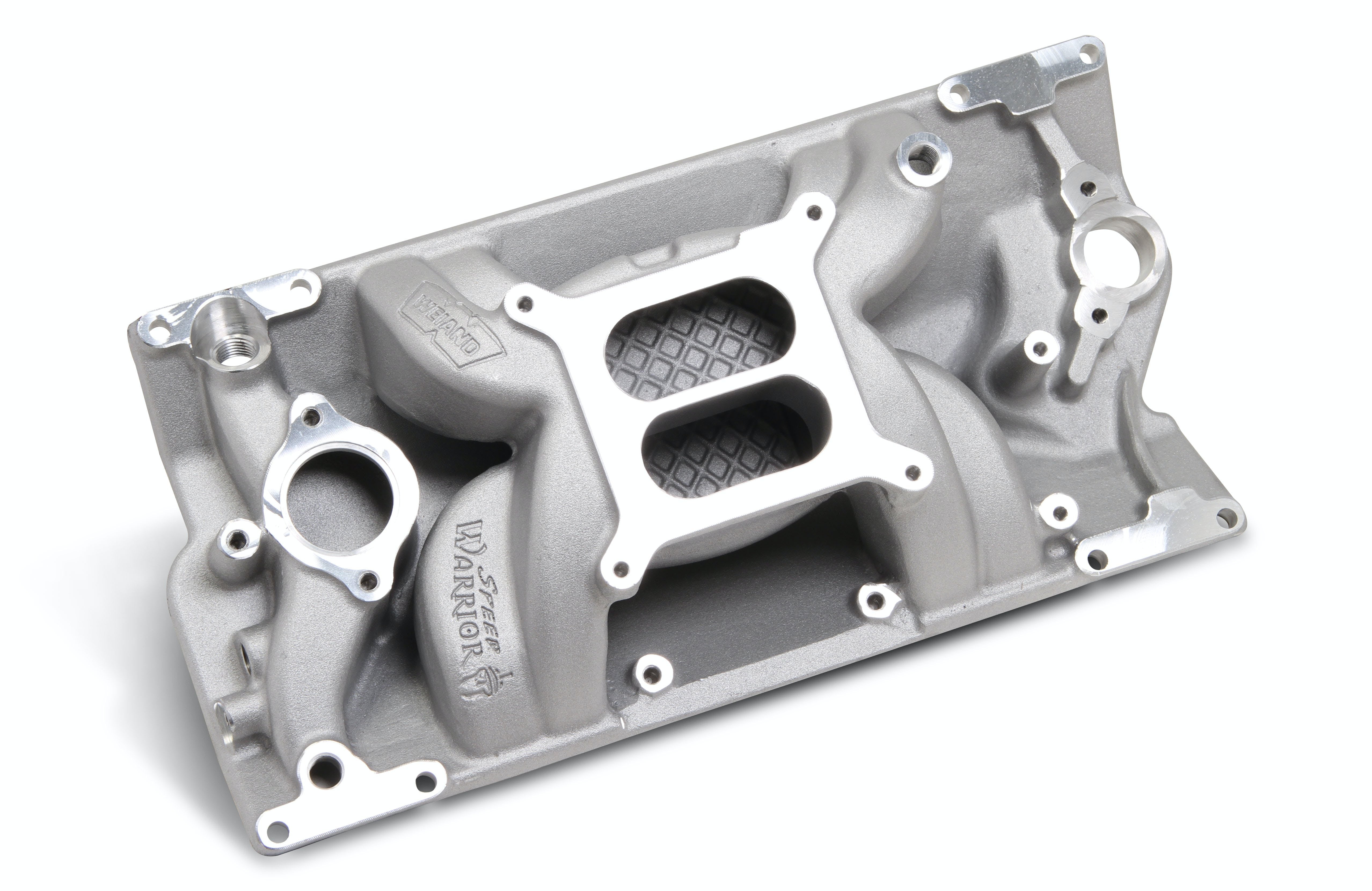 The Weiand Speed Warrior features long, separated runners for bottom-end and mid-range power, plus a special runner design and larger plenum to flow the air needed for high-rpm horsepower. All of this usable power makes this intake perfect for your street and strip hot rod! * Utilizes late model alternator an A/C bracket mounting provisions. Has additional vacuum tap off of runner. Recommended intake manifold gasket - Mr Gasket #'s 5821 or 101G