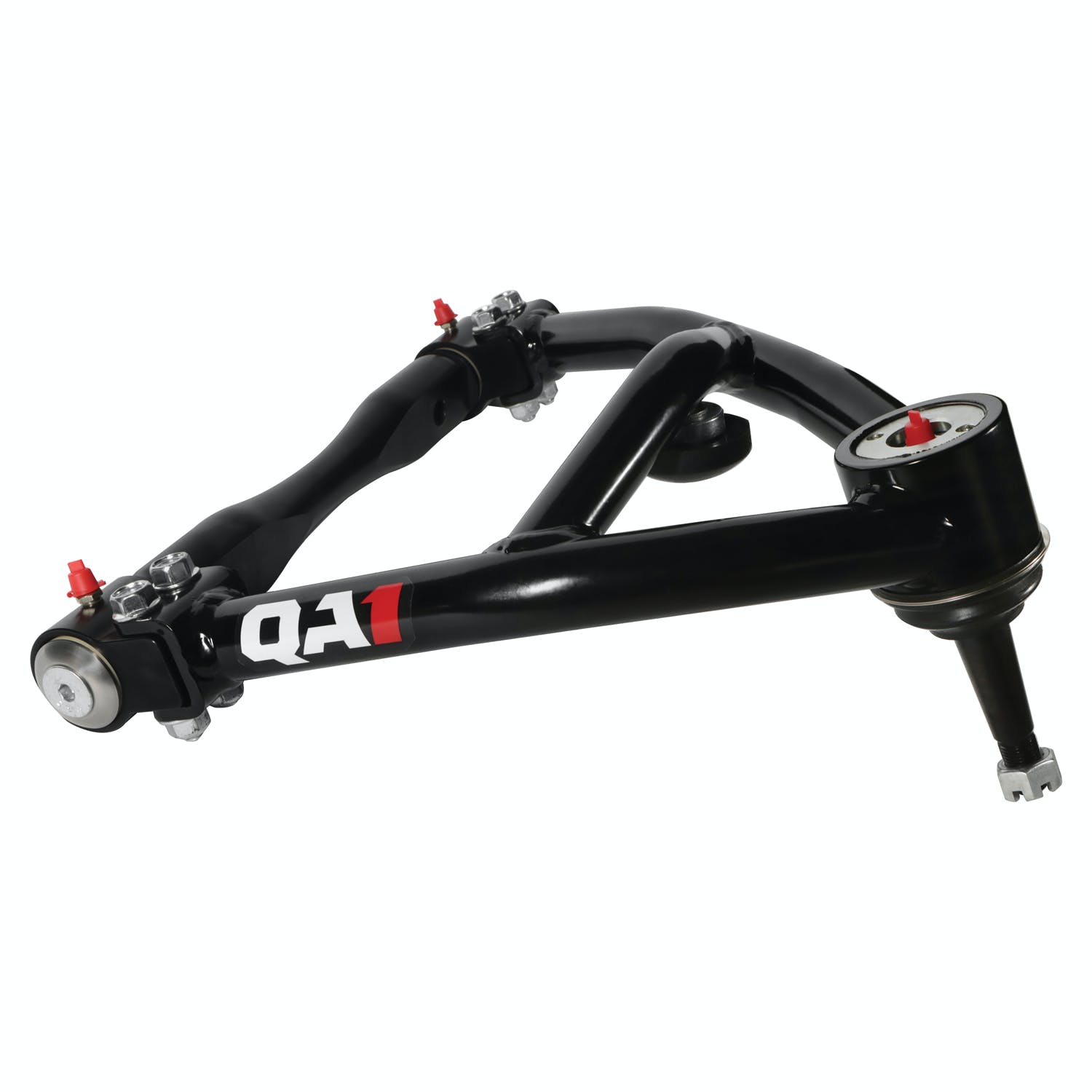 QA1?s Pro-Touring Control Arms are the answer to your handling needs for autocross and road course. Designed with QA1?s Ultra Low Friction Ball Joint, these arms will eliminate flex and provide bind-free movement. The one inch longer upper ball joint stud improves camber gain to keep the tire contact patch optimal for superior cornering grip. QA1?s ball joints are adjustable and rebuildable for tuning with different stud lengths. Configured for QA1 Pro Coil Systems with double shear lower mounting. The combination of high strength tubing and billet aluminum cross shafts make these arms amount to the lightest on the market with improved strength and durability. Robotically welded and high-quality powder coated these street control arms look great. All of these arms are designed to add 3-4 degrees of caster and 0.5 to 1 degree of negative camber when used together. When used independently they will add approximately half of the preceding numbers.