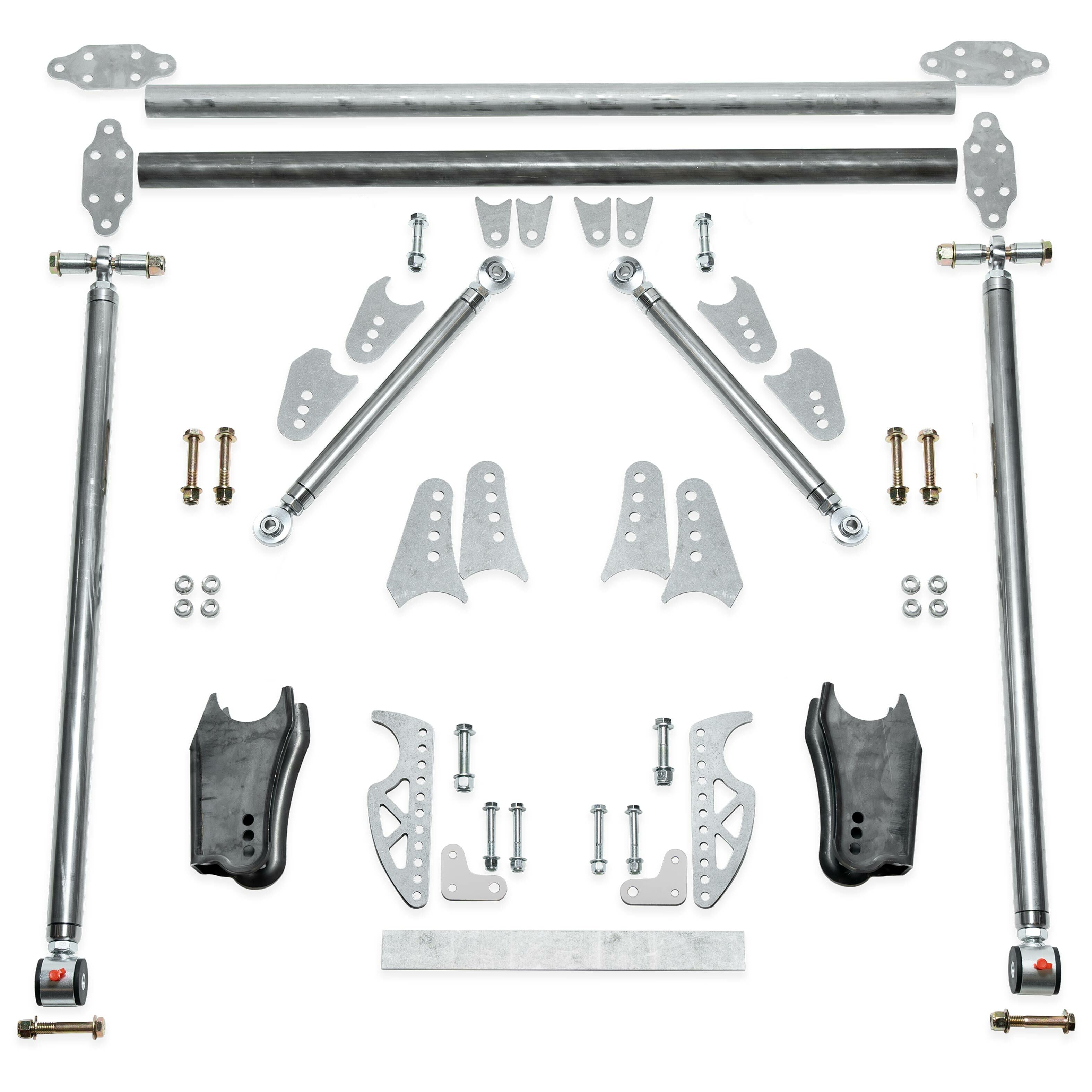 QA1's Heavy Duty Pro Rear Triangulated 4-link system includes everything needed for a custom install and provides exceptional handling and performance gains. Pair with QA1 coilovers for the best performance and adjustability.