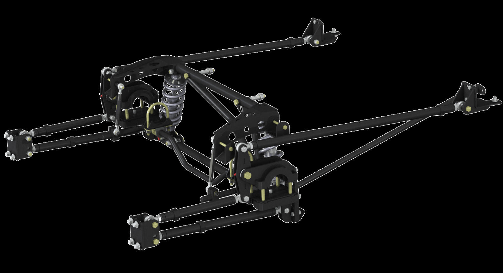 Available for 1967-1979 Mopar A-body vehicles with an 8 3/4'' rear axle assembly, this revolutionary system replaces leaf springs with a 6-link suspension. The 6 links replicate the geometry of the tried-and-true 4-link while still mounting to the existing locations on the chassis. This system provides an easy, bolt-in option to replace your leaf springs without having to do any cutting, welding or fabricating, Now you can get the performance that comes with coil-over shocks without taking a torch to your Mopar. The Rear Suspension Conversion System positions the roll center near the original location, so it works well with stock or modified front geometry. Made of tubular steel, this system provides smooth, bind-free movement that eliminates the need for special links or compliant bushings like typical 3- and 4-links. It's available with QA1 single, double, or 4-way adjustable shocks with soft, medium and firm spring rates to dial in the perfect ride. It works with the factory fuel tank, and is designed for 26 inch fender height with 27 inch tall tires with 1 inch of ride height adjustability in either direction. This conversion system includes shocks, springs, frame brackets, axle brackets, linkage assemblies, center cross member assembly, sway bars, spanner wrench and all the necessary hardware.
