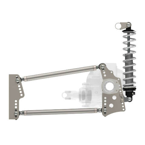 Product Overview: QA1's Heavy Duty Pro Rear Drag 4-link system streamlines the fabrication process delivering professional-grade results and performance in a convenient easy-to-order kit from one source. This 4-link system is designed for the hardcore do-it-yourself racer looking for a solution to take their vehicle to the next level. High quality MIG-weldable components ensure a safe and properly engineered design that can be easily adapted into many drag racing setups. Find convenience safety and performance all from QA1 with the HD Pro Rear Drag 4-Link. Performance: This drag race-style 4-link design is known for its performance and adjustability with a wide range of instant center tuning and on-car adjustability. The components can be cut to length to work in any setup with 40 inch or narrower frame-rails. QA1's 7 inch travel track-proven shocks round out the kit and offer adjustability for track conditions and plenty of travel. Heavy Duty Design: This heavy-duty design can handle demands of high-performance racing. With inch-thick plates 1-1/4 inch trailing arm tubes Grade 8 hardware and QA1 chromoly rod ends these kits are built to put down serious power. Adaptability: This kit contains all the components and hardware needed for assembly and mounting of the trailing arms shocks springs and uses a diagonal link for lateral locating. All components can be purchased individually if different configurations are required. Look to QA1 for components that will help in any drag race suspension. Kit Contents: 22 Trailing arms brackets rod ends tube adapters 40 shock crossmember and mounting tabs 40 Diagonal link kit with mounting brackets Grade 8 hardware MOD Series 4-way Adjustable Coilover Shocks Fitment Notes Welding required Trailing arm tubes and diagonal links can be cut to length Works with 3 in. axle tubes Works on 40 in. and narrower frame rails