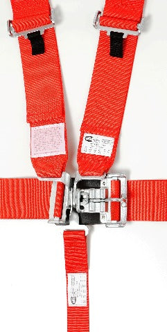 The SFI 16.1 Latch & Link 5-Point Racing Harness Set has 3 polyester webbing, a pull-down lap belt that adjusts 20-62, twin individual shoulder belts that adjust 20-60, a 2 crotch strap, & steel hardware with 3 ends.