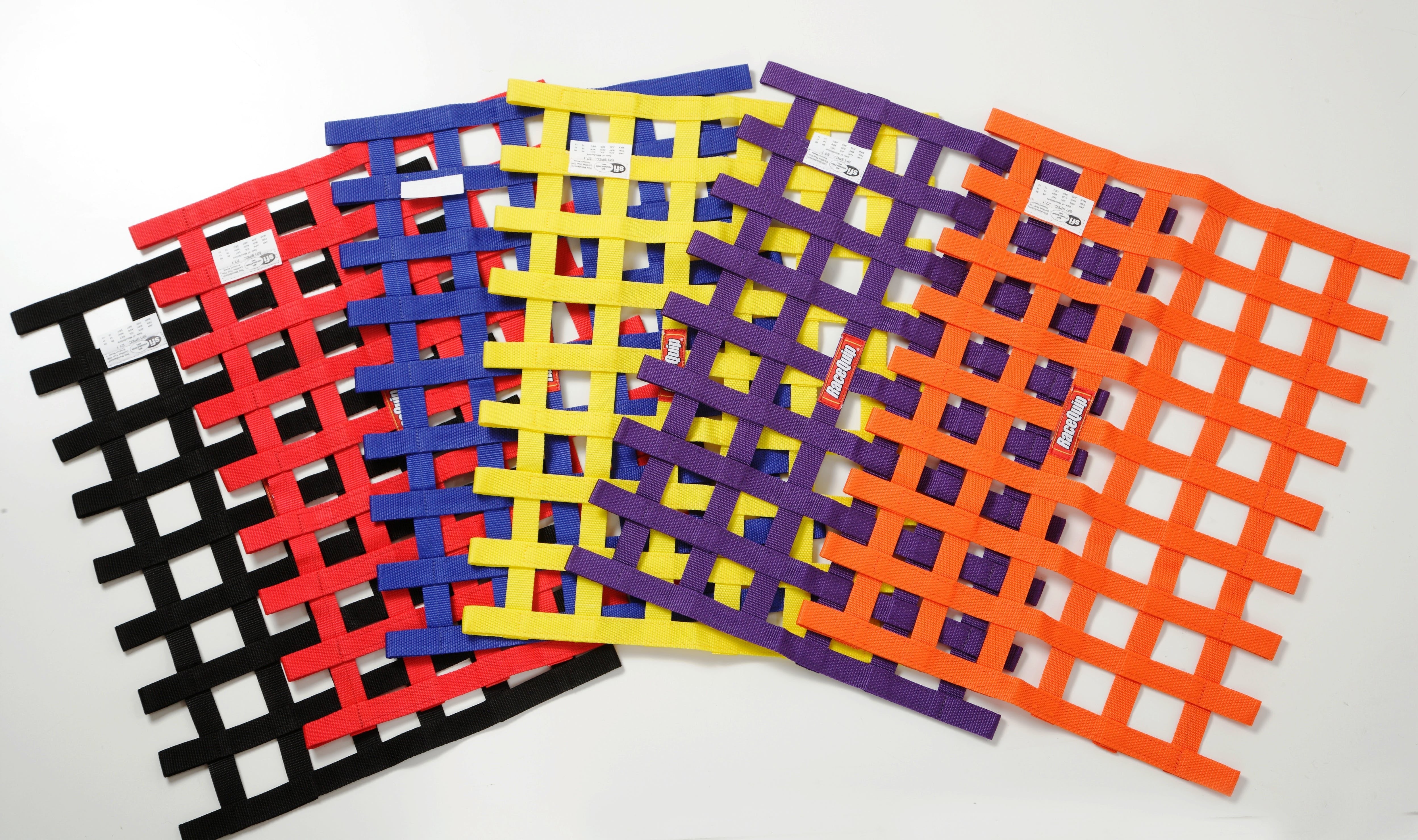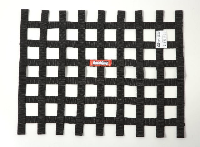 RaceQuip SFI 27.1 Rated Ribbon Window Nets are constructed of heavy-duty 1 polypropylene webbing and nylon thread for maximum durability. RaceQuip utilizes a jig-built construction technique to ensure consistent size, shape, and fit. This auto racing window net fits a window size of 18 High X 24 Wide which is standard and will fit most common racecar window openings. SFI 27.1 certified and available in black, red, blue, yellow, orange, purple, platinum, and green.