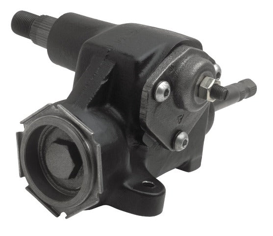 Steering Box: Jeep / 525 20:1 Ratio ManualHeavy-duty manual steering box for heavier applications. This steering box features 3 bolt pattern and uses stock manual pitman arm spline size 3/4 -30 with a quicker 20:1 ratio. All new parts - not rebuilt!