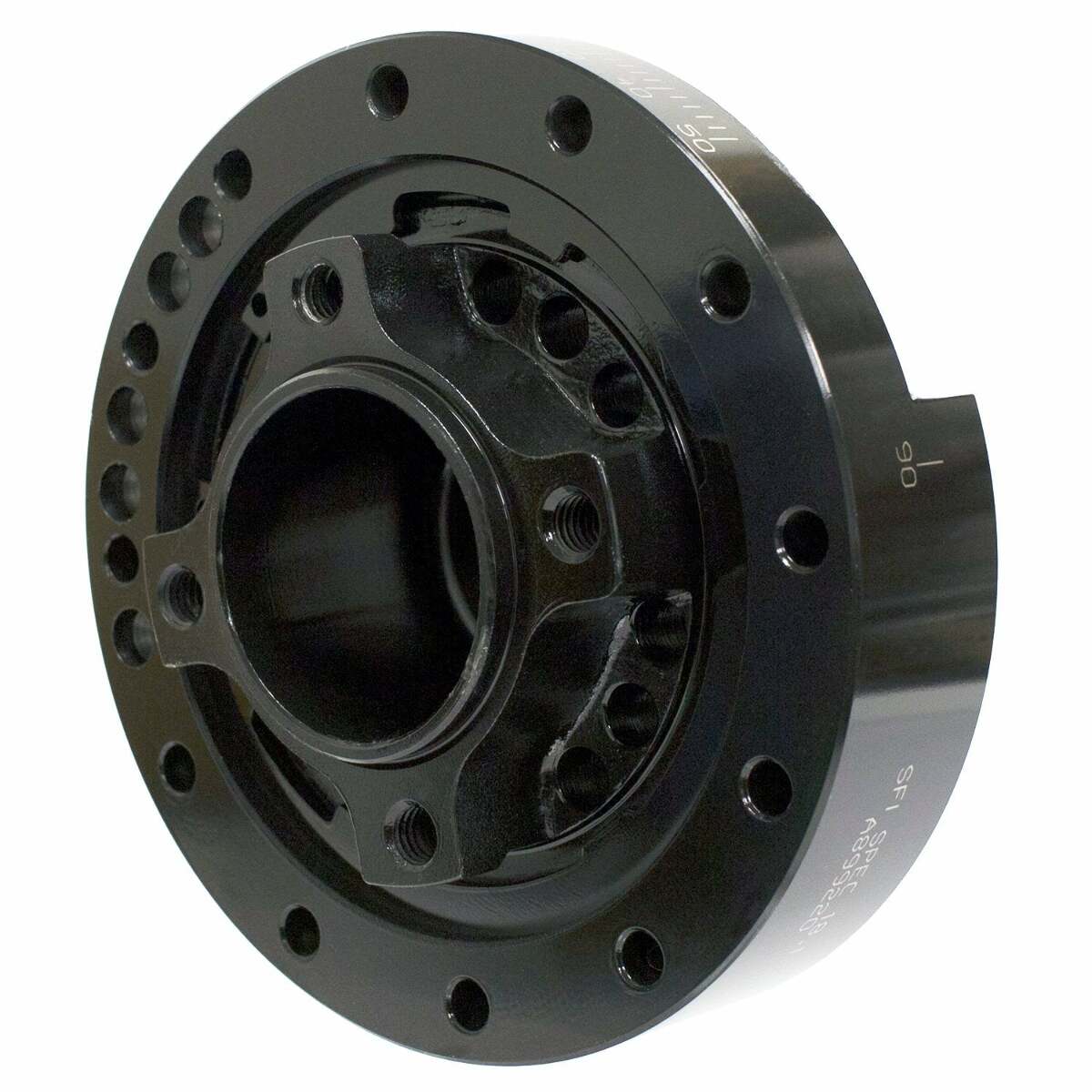PowerBond Race Performance Harmonic Balancers PowerBond Race performance harmonic balancers bring the advantages of bonded balancers to high-revving and high-horsepower street/race applications where an SFI-approved balancer is required. They have been tested beyond 21,000 rpm without failure, and every balancer features a precision CNC-machined AISI 1045 forged steel hub bonded to an equally strong steel inertia ring. They are very light and in most cases, they are only marginally heavier than the original cast iron balancer. The steel inertia ring on the Race Series models is positively protected against forward and backward movement. PowerBond uses our Race Series high-pressure, low-cure that features a natural rubber developed in our laboratory. Every model has easy to read computer etched timing marks and meet SFI specification 18.1
