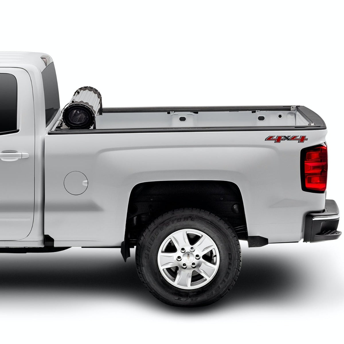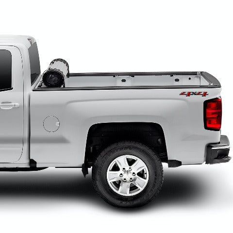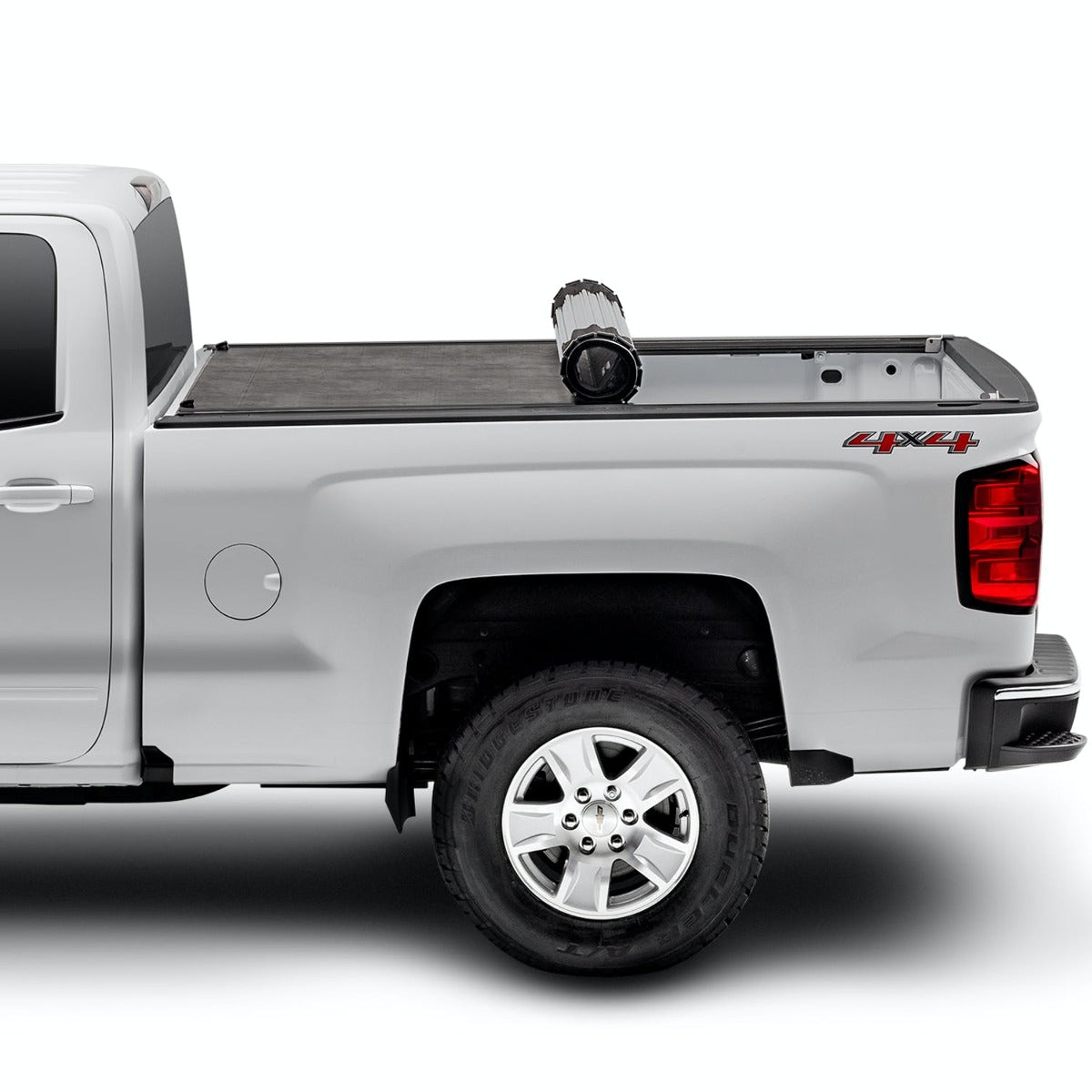 The Revolver X2 hard rolling truck bed cover features exclusive automatic rotational locking rails that secure the cover the entire length of the bed on each side. This hard aluminum roll-up cover easily rolls up with one-handed operation and allows use of every inch of the truck bed without blocking your rear window. This cover does it all with unrivaled strength, security and style.