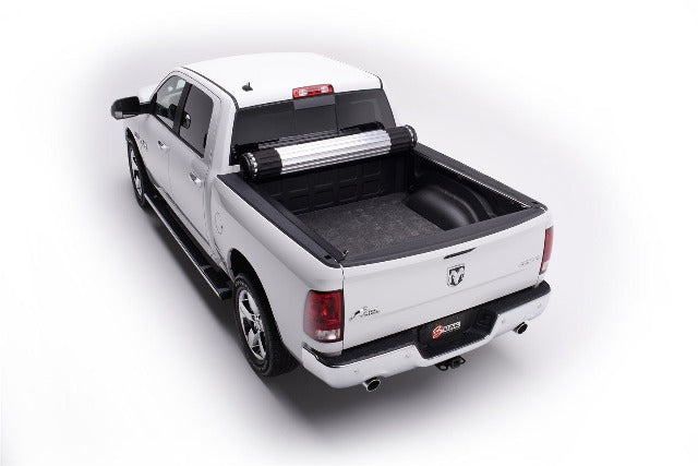The Revolver X2 hard rolling truck bed cover features exclusive automatic rotational locking rails that secure the cover the entire length of the bed on each side. This hard aluminum roll-up cover easily rolls up with one-handed operation and allows use of every inch of the truck bed without blocking your rear window. This cover does it all with unrivaled strength, security and style.