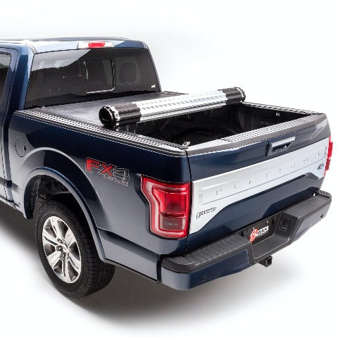 The Revolver X2 hard rolling truck bed cover features exclusive automatic rotational locking rails that secure the cover the entire length of the bed on each side. This hard aluminum roll-up cover easily rolls up with one-handed operation and allows use of every inch of the truck bed without blocking your rear window. This cover does it all with unrivaled strength, security and style.