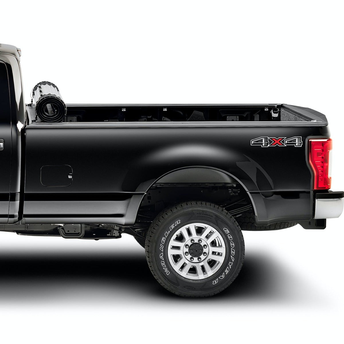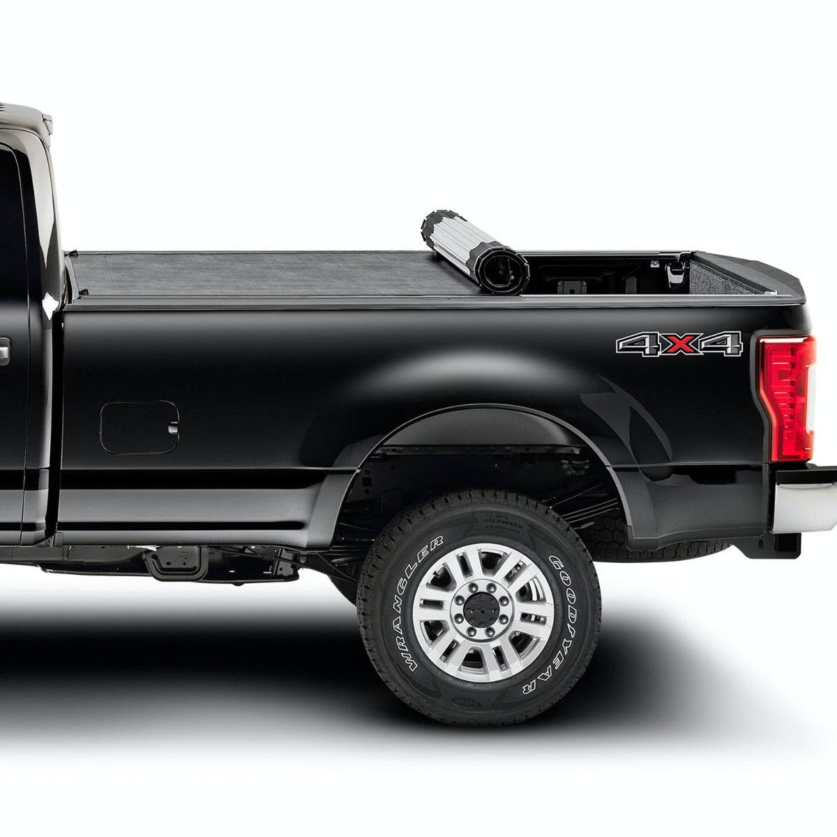 The Revolver X2 hard rolling truck bed cover features exclusive automatic rotational locking rails that secure the cover the entire length of the bed on each side. This hard aluminum roll-up cover easily rolls up with one-handed operation and allows use of every inch of the truck bed without blocking your rear window. This cover does it all with unrivaled strength, security and style.