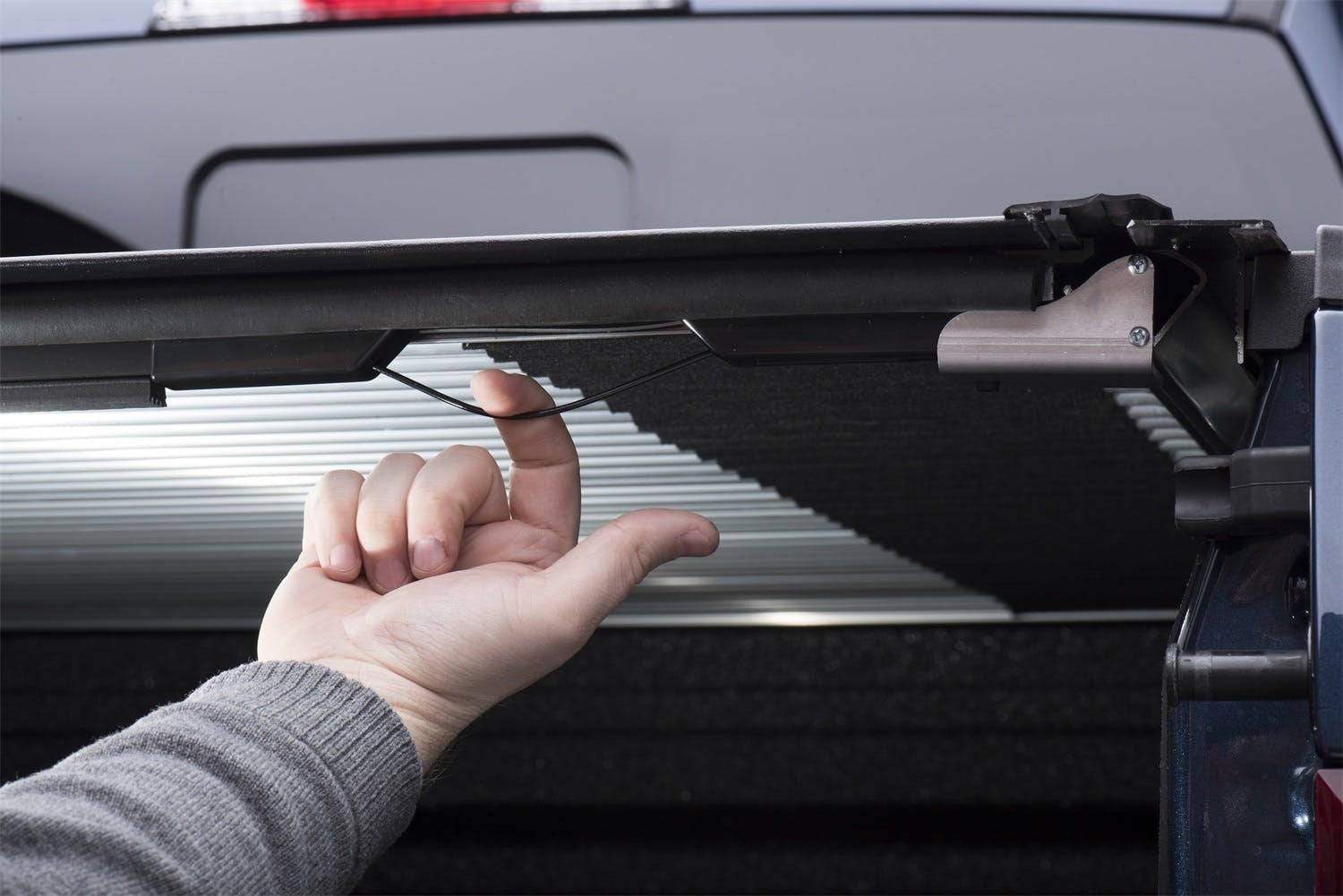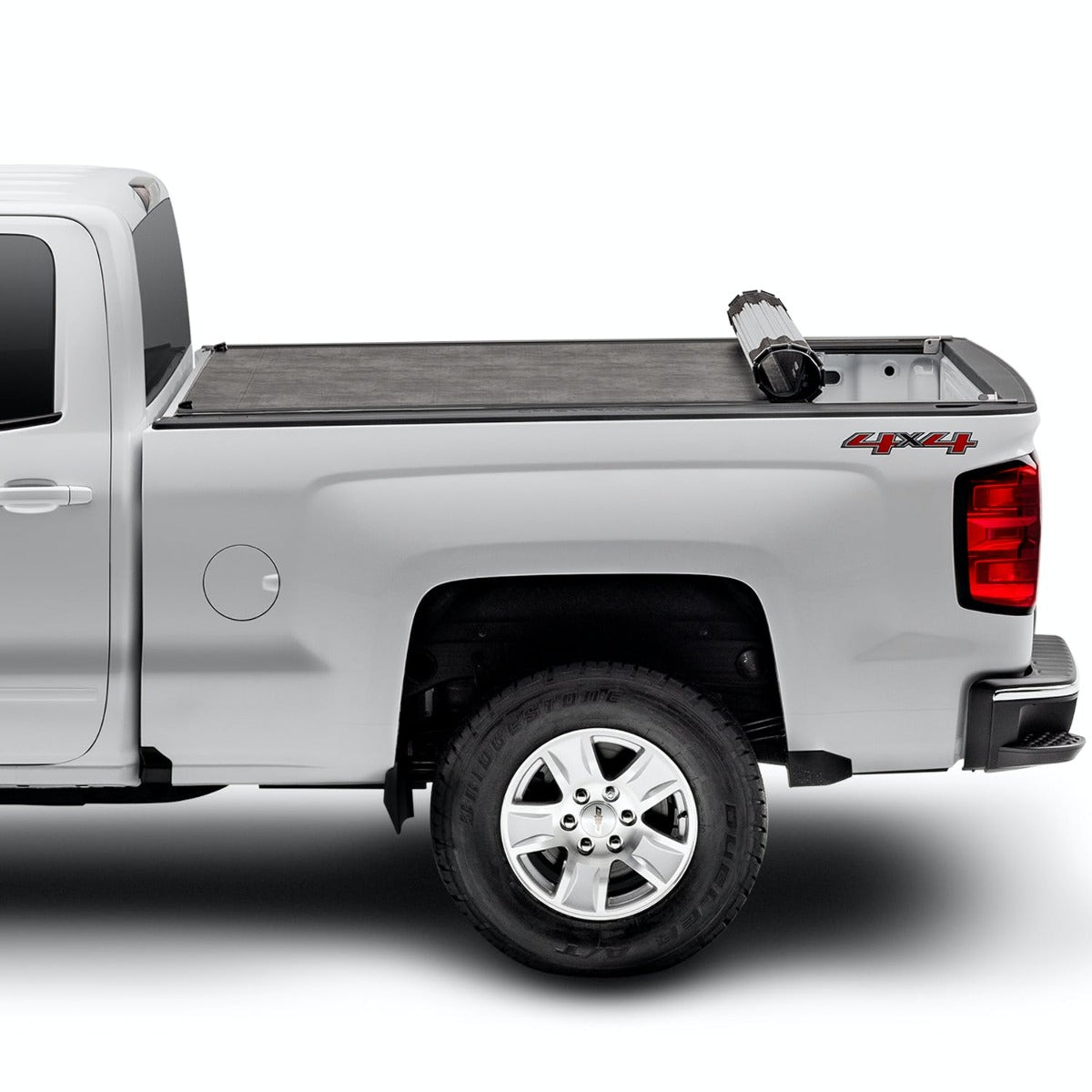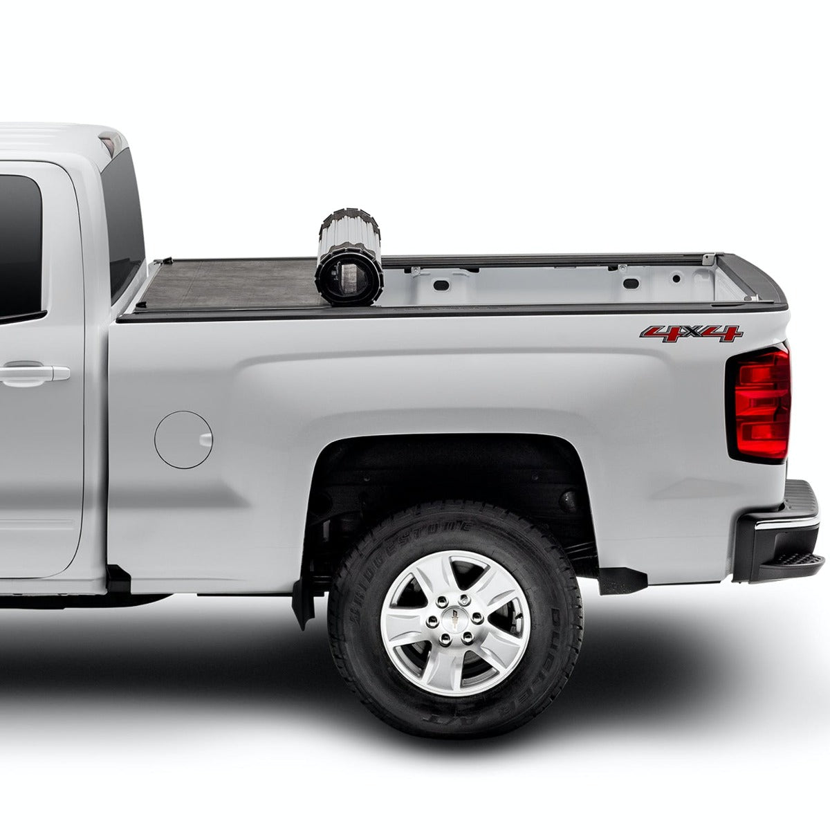 The Revolver X2 hard rolling truck bed cover features exclusive automatic rotational locking rails that secure the cover the entire length of the bed on each side. This hard aluminum roll-up cover easily rolls up with one-handed operation and allows use of every inch of the truck bed without blocking your rear window. This cover does it all with unrivaled strength, security and style.