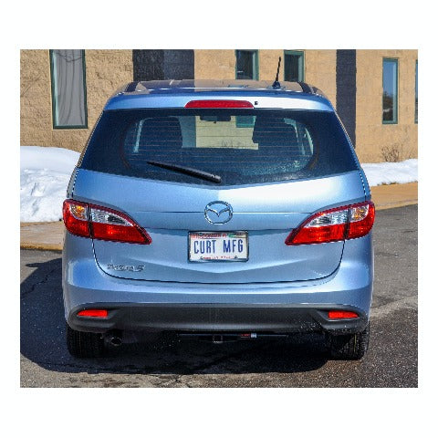 However you define adventure -- whether it's climbing onto the back of a mountain bike, hunting from the top of a tree stand or camping with the family a long way from nowhere -- CURT class 1 hitches provide a light-duty towing receiver to help you Bring It. Each is made to fit a specific vehicle, providing easier installation, a better fit and optimal towing capacity. Custom class 1 trailer hitches are available for a variety of smaller vehicle types, including the compact car, crossover, minivan and small SUV. This particular class 1 hitch is designed to be a custom hitch for certain years of the Mazda 5 (to verify vehicle compatibility, see the CURT application guide at curtmfg.com). Tested in accordance with SAE J684, it offers a weight carrying capacity of 2,000 lbs. GTW and 200 lbs. TW. It is equipped with 1-1/4 receiver tube opening to accept a ball mount shank or other hitch mount. This class 1 hitch also comes with all necessary mounting hardware. With its lightweight design and smaller receiver tube size, a class 1 hitch is especially useful for adding cargo space with a hitch-mounted bike rack or cargo carrier. They can also typically be used to tow small trailers such as a utility trailer, kayak trailer or teardrop camper (never exceed the lowest weight capacity of any towing component; i.e. the vehicle, hitch, trailer, etc). Though CURT class 1 trailer hitches are only intended for light-duty towing, we apply the same principles of quality as we do to the rest of our rear mount hitches. Each class 1 hitch is made with hands-on engineering, high-strength steel and precise welding. We use a co-cured finish of liquid A-coat, inside and out, and durable black powder coat to provide a lasting defense against rust, chips and UV rays.