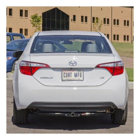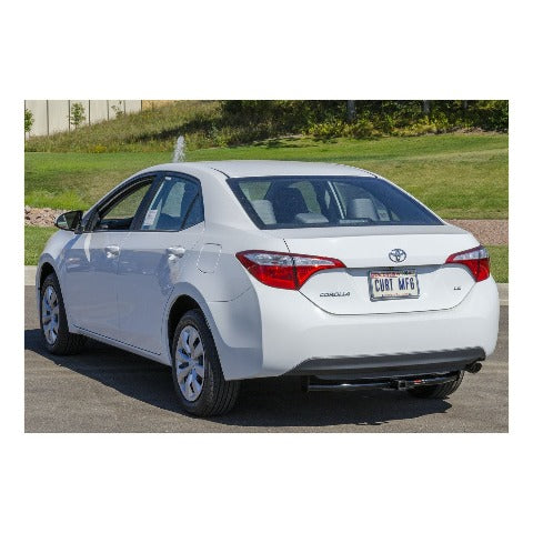 Connect to your lifestyle with a custom hitch receiver from CURT. All of our custom hitches are designed for a vehicle-specific fit, manufactured with pride, finished for industry-leading rust resistance and tested to rigorous SAE J684 standards for safety. This class 1 trailer hitch and ball mount combination is designed for a custom fit on select years of the Toyota Corolla (see application info to verify fitment). The hitch integrates with the vehicle's frame and provides a useful and dependable 1-1/4 x 1-1/4 receiver. The receiver is perfect for attaching the included ball mount and towing a small trailer, or for adding cargo space with a hitch-mounted cargo carrier, bike rack or other accessory. This particular class 1 hitch is rated for 2,000 pounds gross trailer weight and 200 pounds tongue weight (never exceed the lowest-rated towing component). The ball mount included with this trailer hitch quickly and easily installs into the hitch receiver and has a 3/4 trailer ball hole (trailer ball not included). It can be mounted in the rise or drop position to promote level towing. Like all CURT custom hitches, this class 1 hitch is protected with our co-cured finishing process. It is descaled for a smooth surface, immersed in liquid A-coat for rust resistance inside and out, covered with a durable black powder coat and finally co-cured for an industry-leading rust, chip and UV-resistant shield. No matter where you're headed or which season of the year you're towing in, this CURT hitch is equipped for long-lasting resilience to the elements. It features an open-back receiver for easy cleaning, and it comes with all the hardware necessary for the installation.