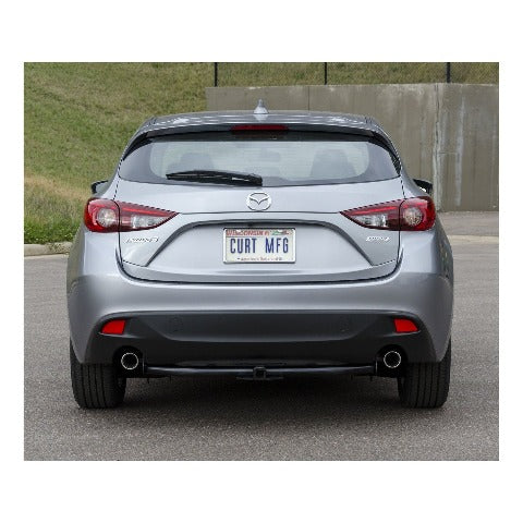 However you define adventure -- whether it's climbing onto the back of a mountain bike, hunting from the top of a tree stand or camping with the family a long way from nowhere -- CURT class 1 hitches provide a light-duty towing receiver to help you Bring It. Each is made to fit a specific vehicle, providing easier installation, a better fit and optimal towing capacity. Custom class 1 trailer hitches are available for a variety of smaller vehicle types, including the compact car, crossover, minivan and small SUV. This particular class 1 hitch is designed to be a custom hitch for certain years of the Mazda 3 (to verify vehicle compatibility, see the CURT application guide at curtmfg.com). Tested in accordance with SAE J684, it offers a weight carrying capacity of 2,000 lbs. GTW and 200 lbs. TW. It is equipped with 1-1/4 receiver tube opening to accept a ball mount shank or other hitch mount. This class 1 hitch also comes with all necessary mounting hardware. With its lightweight design and smaller receiver tube size, a class 1 hitch is especially useful for adding cargo space with a hitch-mounted bike rack or cargo carrier. They can also typically be used to tow small trailers such as a utility trailer, kayak trailer or teardrop camper (never exceed the lowest weight capacity of any towing component; i.e. the vehicle, hitch, trailer, etc). Though CURT class 1 trailer hitches are only intended for light-duty towing, we apply the same principles of quality as we do to the rest of our rear mount hitches. Each class 1 hitch is made with hands-on engineering, high-strength steel and precise welding. We use a co-cured finish of liquid A-coat, inside and out, and durable black powder coat to provide a lasting defense against rust, chips and UV rays.