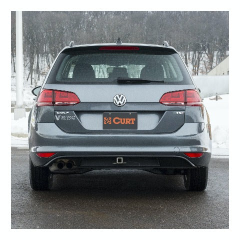 However you define adventure -- whether it's climbing onto the back of a mountain bike, hunting from the top of a tree stand or camping with the family a long way from nowhere -- CURT class 1 hitches provide a light-duty towing receiver to help you Bring It. Each is made to fit a specific vehicle, providing easier installation, a better fit and optimal towing capacity. Custom class 1 trailer hitches are available for a variety of smaller vehicle types, including the compact car, crossover, minivan and small SUV. This particular class 1 hitch is designed to be a custom hitch for certain years of the Volkswagen Golf Alltrack and Golf SportWagen (to verify vehicle compatibility, see the CURT application guide at curtmfg.com). Tested in accordance with SAE J684, it offers a weight carrying capacity of 2,000 lbs. GTW and 200 lbs. TW. It is equipped with 1-1/4 receiver tube opening to accept a ball mount shank or other hitch mount. This class 1 hitch also comes with all necessary mounting hardware. With its lightweight design and smaller receiver tube size, a class 1 hitch is especially useful for adding cargo space with a hitch-mounted bike rack or cargo carrier. They can also typically be used to tow small trailers such as a utility trailer, kayak trailer or teardrop camper (never exceed the lowest weight capacity of any towing component; i.e. the vehicle, hitch, trailer, etc). Though CURT class 1 trailer hitches are only intended for light-duty towing, we apply the same principles of quality as we do to the rest of our rear mount hitches. Each class 1 hitch is made with hands-on engineering, high-strength steel and precise welding. We use a co-cured finish of liquid A-coat, inside and out, and durable black powder coat to provide a lasting defense against rust, chips and UV rays.