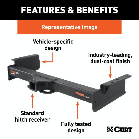 When we came to the limits of towing capacity, we wanted to know what else was out there. What could we discover off the beaten path? So, we kept going. CURT class 5 Xtra Duty hitches begin a class of their own, beyond class 4 and beyond anything the standards dictate. They are designed for the hard road where only full-size pickup trucks, vans and SUVs dare to tread. They are capable of pulling almost any heavy-duty trailer, including toy haulers, dump trailers, logging trailers, small yacht trailers and more (NOTE: Never exceed the lowest weight capacity of any towing component). This particular Xtra Duty class 5 trailer hitch offers a gross trailer weight capacity of 16,000 lbs. and an extra-high tongue weight capacity of 2,400 lbs. It features a 2 x 2 receiver tube opening to accept a ball mount or hitch-mounted accessory, such as a cargo carrier or winch mount. It is designed to be a custom-fit trailer hitch for certain years of the Dodge Ram 2500 and 3500 (to verify compatibility with your vehicle, see application info). For a little extra towing power and stability, this class 5 hitch can also be used in combination with a weight distributing hitch. It is rated for 17,000 lbs. WD and 2,400 lbs. WDTW. In our drive to create a more powerful hitch, CURT has not neglected the finer details. Our class 5 trailer hitches are welded with precision and go through multiple stages of cleaning to create a smooth surface that is ready to accept our co-cured finish. To protect them from corrosion, chipping and UV damage, these hitches are immersed in a liquid A-coat and then finished in a high-quality black carbide powder coat. They come with grade-8 mounting hardware for solid installation.