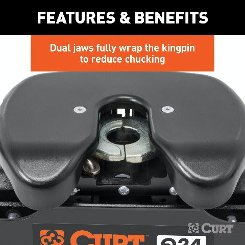 With a gross trailer weight capacity of 24,000 lbs., the CURT Q24 5th wheel hitch is capable of towing some of the heaviest 5th wheel trailers, while still offering a smooth, quiet ride. Instead of pivoting of two axes, the Q24 is built with a spherical bearing that allows the hitch head to pivot in virtually any direction. This means smoother turns, a quieter ride and less strain on your towing equipment and truck. The Q24 also features dual-locking jaws for 360-degree kingpin contact and three grease fittings for continuous lubrication. The Q24 5th wheel hitch also makes coupling easier with its self-aligning head, single-handle operation and three-position coupling indicator. While the self-aligning head helps reduce errors when backing up to the kingpin, the coupling indicator eliminates the need for you to get in and out of the truck cab to check the kingpin connection. For long-lasting protection against the elements, this 24K 5th wheel hitch is finished with a highly durable carbide black powder coat. This particular Q24 hitch comes with a set of CURT OEM puck system 5th wheel legs, designed to be mounted on select Chevrolet or GMC long-bed pickup trucks with the truck bed puck system (year range specific). Using a set of quarter-turn anchors, the legs quickly and easily drop into the pucks, instantly mounting the Q24 hitch and equipping the truck for 5th wheel towing. The anchors feature an adjustable design to perfectly lock the hitch into place and eliminate any chucking noises, and the legs are finished in a durable carbide black powder coat to be highly resistant to scratches, rust and UV damage. These legs are only intended to fit select Chevrolet or GMC trucks with a year-specific puck system and cannot be installed without it. Certain turret-style pin boxes, such as Sidewinder, are not compatible with CURT Q-series hitches and should not be used as they may create vehicle / trailer handling hazards.