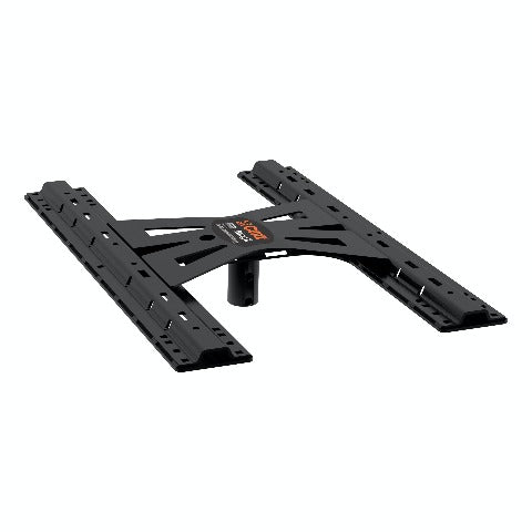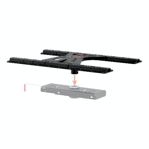 CURT 5th wheel adapter plates are a fast, dependable way to convert your gooseneck trailer hitch into a set of 5th wheel rails to accept a 5th wheel hitch and switch back again. With gooseneck installation brackets and a gooseneck hitch already mounted, the adapter plate post simply mounts into the gooseneck trailer ball hole using a solid shank and is secured with the locking mechanism provided by the gooseneck hitch. One of the most attractive features about CURT 5th wheel adapter plates is that they are practically instantaneous: insert the shank, apply the locking mechanism and just like that you have a sturdy pair of 5th wheel rails. This CURT 5th wheel adapter plate features a round shank and is compatible with CURT Double Lock gooseneck hitches. It features a gross trailer weight capacity of 20,000 lbs., allowing it to adapt and accept a number of 5th wheel hitches up to 20K. This 5th wheel adapter plate offers a simple pin-and-clip conversion for gooseneck hitches and has multiple mounting points to accept either 5th wheel legs or a 5th wheel roller.
