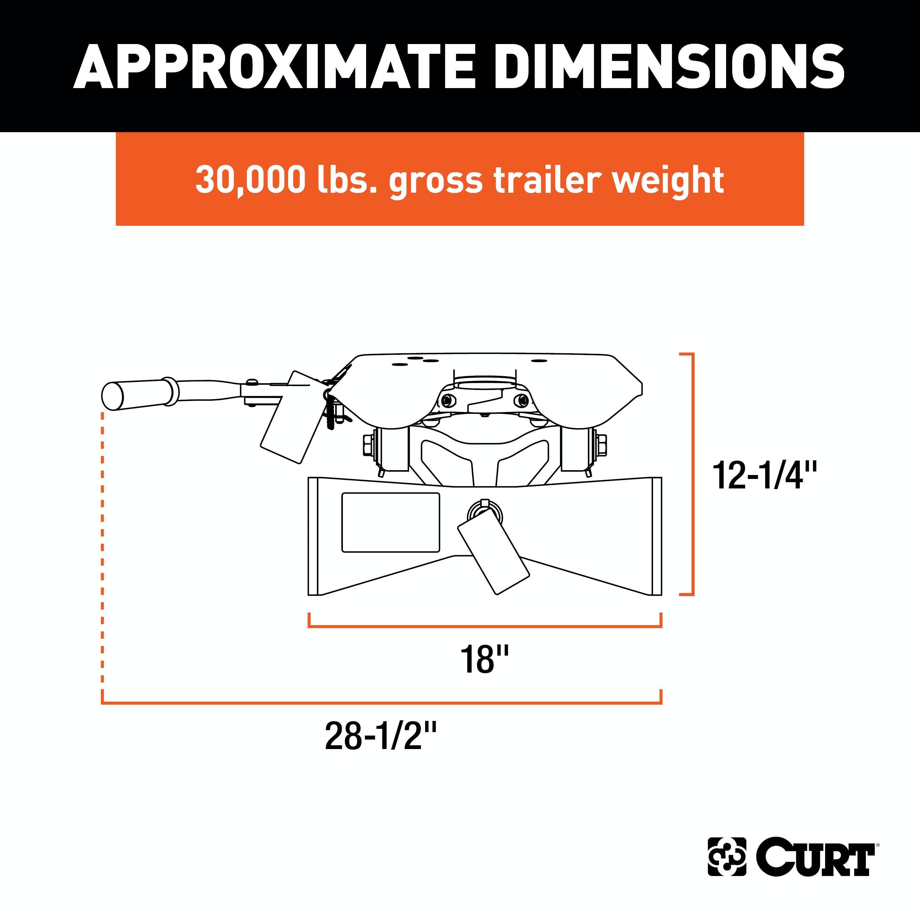 CURT 16590 A30 5th Wheel Hitch Head Only, Legs or Roller Required, 30,000 lbs