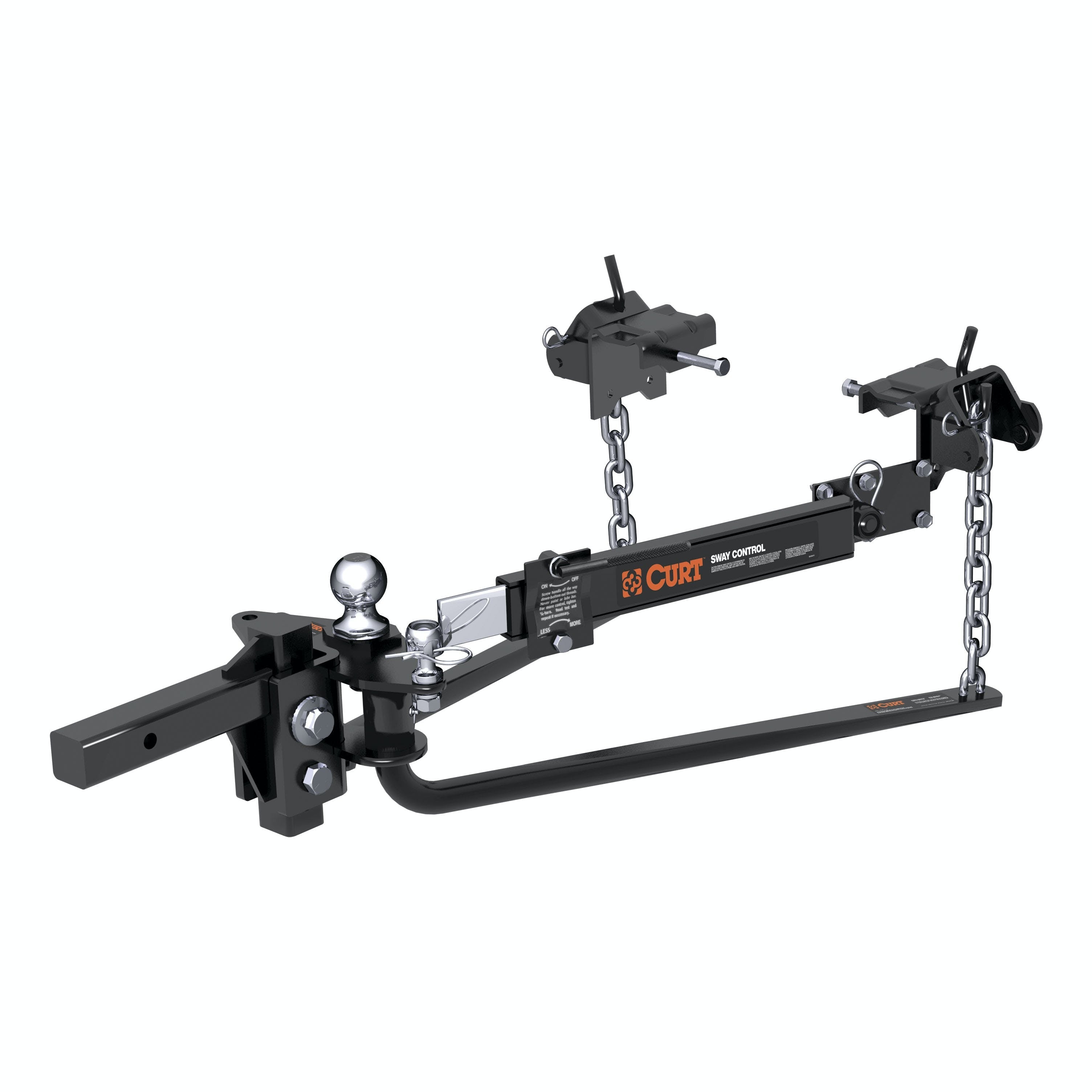 Your route is planned and the trails are calling, but before you can cover any ground, you need to start with a solid connection between your tow vehicle and trailer. The CURT round bar weight distribution hitch with integrated lubrication offers a smooth ride and level towing with its heavy-duty components and built-in lubrication system. From travel trailers to popup campers, the CURT WD hitch is the perfect camping companion to let you Bring It. The strength of the round bar WD hitch begins with its heavy-duty, formed steel head. The formed construction allows for a precise design and supplies the durability needed to manage the weight of heavy trailers. Something unique to the weight distribution hitch is its grease zerk fittings, built directly into the head, allowing for easy, continuous lubrication at the spring bar mounting location. The spring bars are installed from the underside of the WD head and are made with forged steel for optimum strength. Like other CURT weight distribution hitches, the round bar hitch comes with a highly adjustable shank and chain hookup brackets for the perfect amount of tension to level the load. The shank fits any 2 x 2 receiver tube opening, making it compatible with most class 3, class 4 and class 5 trailer hitches. The head is also compatible with our 2-1/2 weight distribution shanks to match the heaviest of class 5 hitches. The hookup brackets and spring bars of the CURT WD hitch use chains and a simple snap-up design for easy setup and adjustment. This particular round bar weight distribution hitch offers a towing capacity ranging from 10,000 to 14,000 lbs. GTW and 1,000 to 1,400 lbs. TW. It comes with installation hardware, a pre-torqued 2-5/16 trailer ball and a sway control unit #17200. To protect this WD hitch on the way to your next destination and beyond, it also comes with a durable carbide powder coat finish.