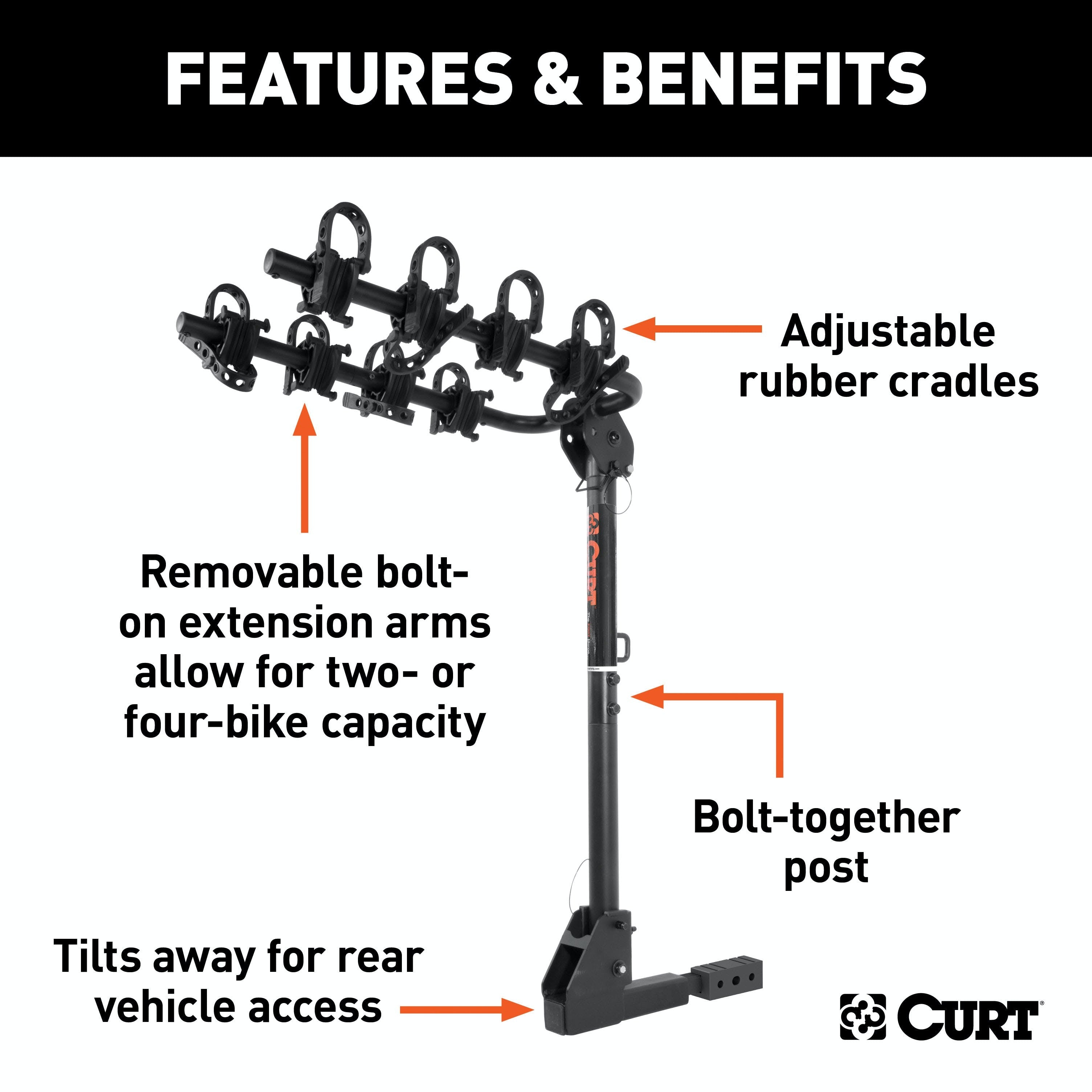 CURT 18030 Extendable Trailer Hitch Bike Rack Mount, Fits 1-1/4, 2-Inch Receiver, 2 or 4 Bicycles