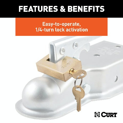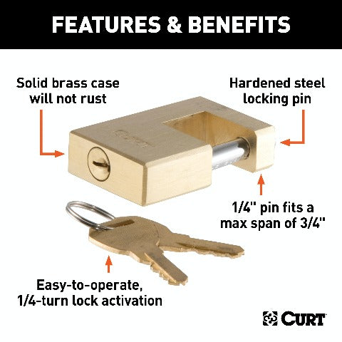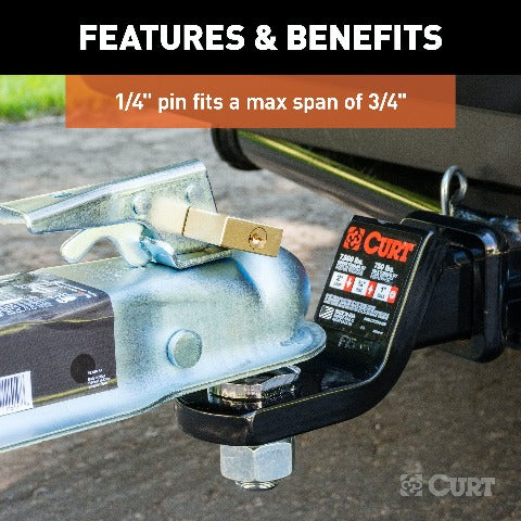 CURT 23546 Brass Trailer Tongue Coupler Lock, 1/4-Inch Pin Diameter, Up to 3/4-Inch Span