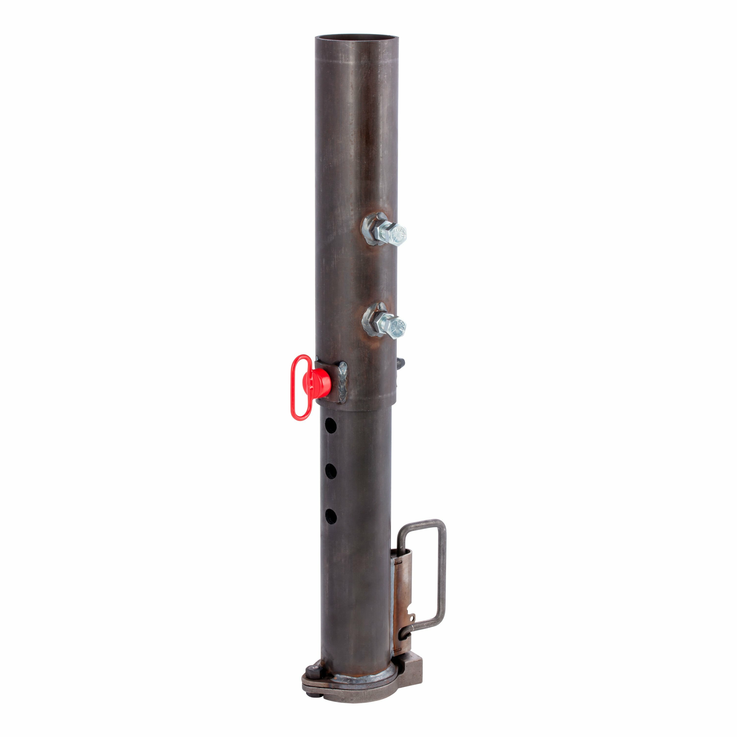 2-5/16? ball socket rated for 30 000 lbs. GTWR Adjustable length with 8? of adjustment (29-1/3? retracted height) Self-centering locking plate for easier hookup Easy-access lock handle for secure connection Compatible with most round-tube trailer tongues Added material around pin holes to prevent hole elongation and reduce wear Tube diameter: 4? I.D. and 4-1/2? O.D. Quality steel construction for dependable towing strength Tested for safety to meet SAE J2638 specifications