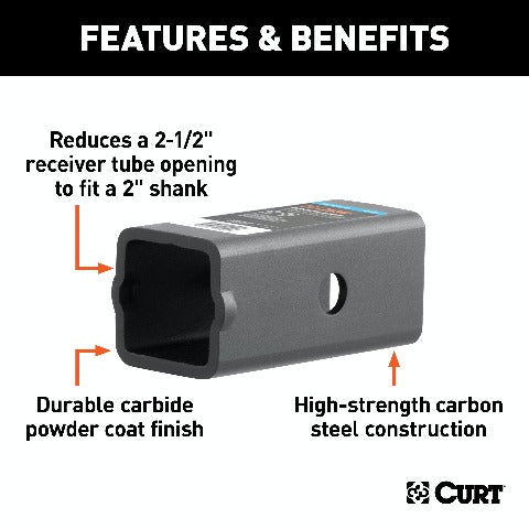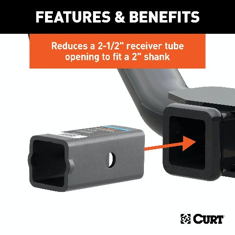 CURT 45405 Trailer Hitch Receiver Adapter Reducer Sleeve, 2-1/2 to 2-Inch