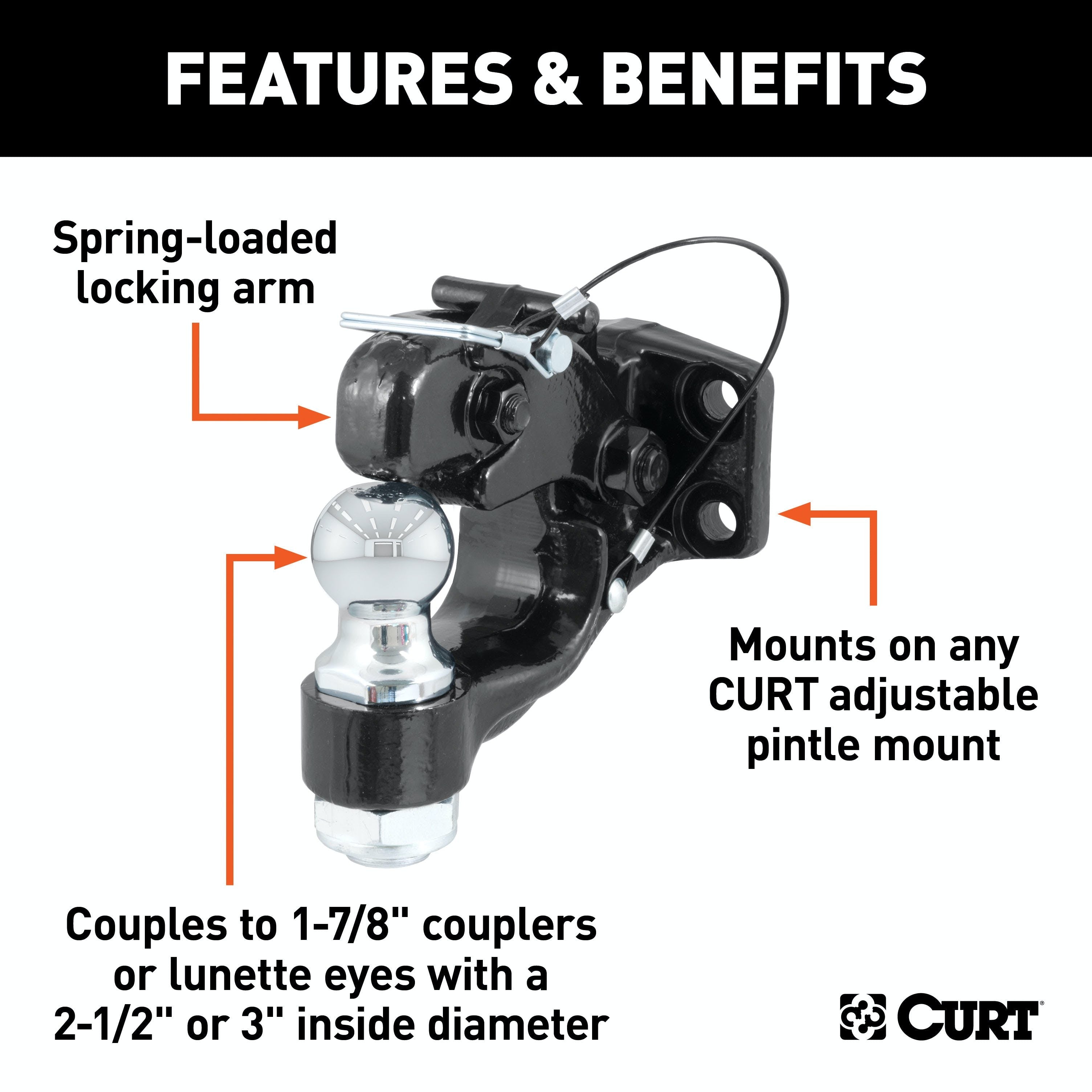 • Mounts On Any Curt Adjustable Pintle Mount