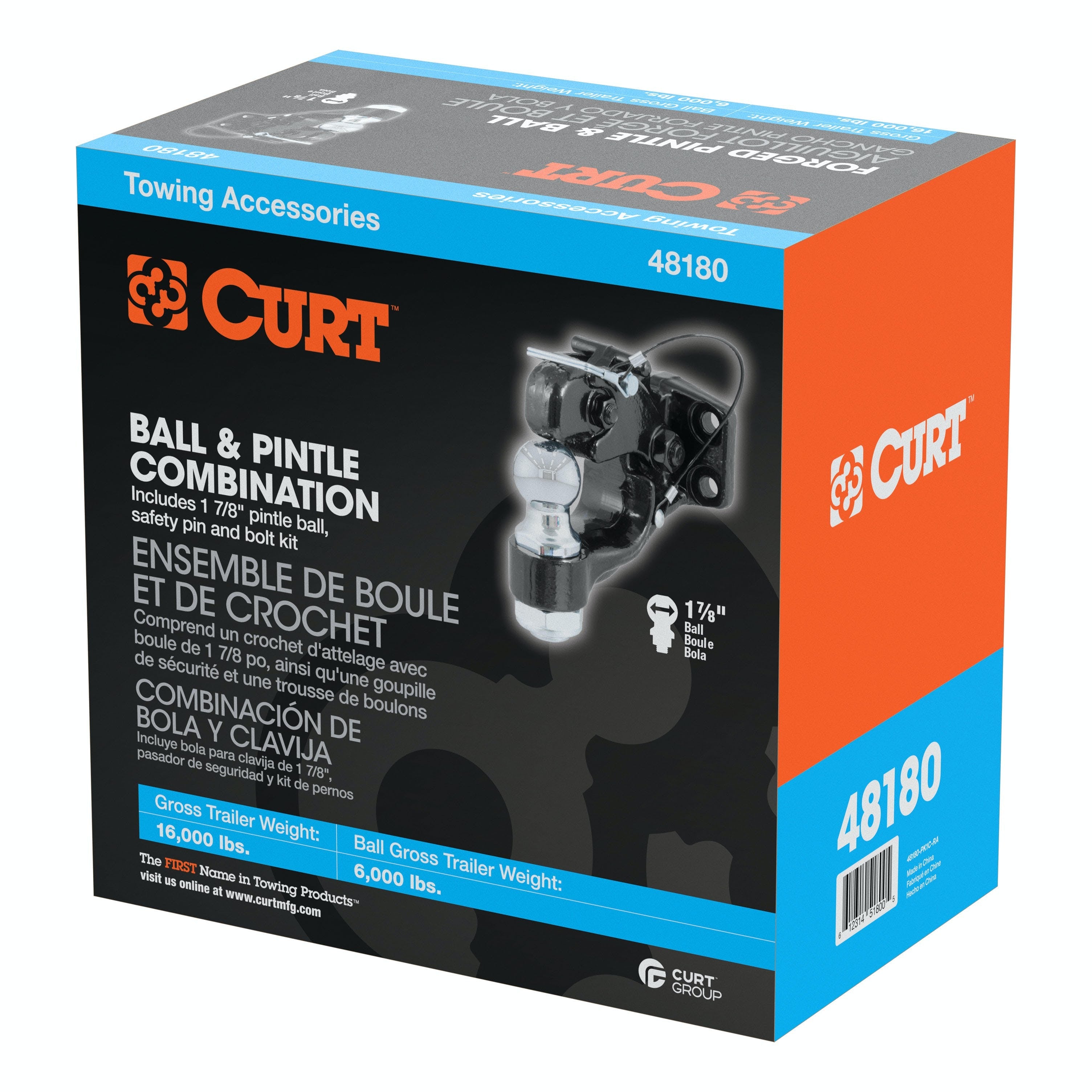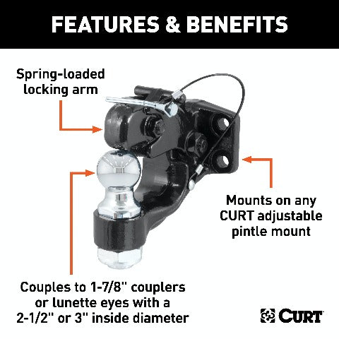 CURT 48180 Ball and Pintle Hitch (1-7/8 Ball, 6,000 lbs. Ball Capacity)