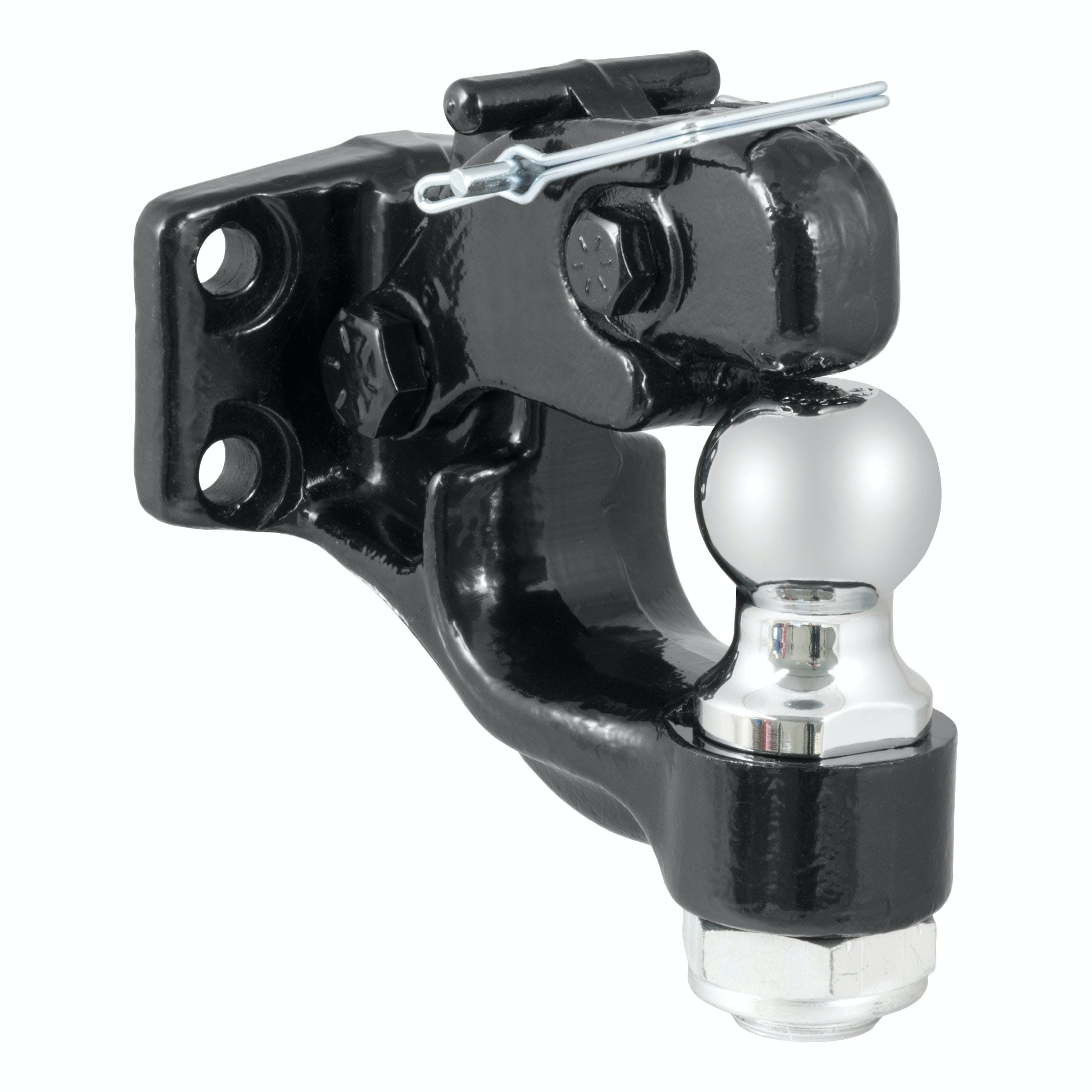 In agriculture, construction and even military applications, pintle hitches are the trusted product of specialized towing. They are notorious for their high weight capacity and simple design. The basic pintle hitch is essentially a hook and loop, with the hook attached to the vehicle and the loop mounted on the trailer. Because of their simple design, pintle hitches are able to have thicker metal construction and more secure coupling. CURT combination ball and pintle hitches combine both a pintle hook and a standard trailer ball to give you a more complete towing option on your heavy-duty truck or SUV. Combination ball and pintle mounts are available with a shank to mount on a receiver or in the adjustable style to mount on a channel or plate. This particular CURT combination pintle and ball mounts features a ball capacity of 6,000 lbs. and a pintle capacity of 16,000 lbs. (NOTE: Never exceed the lowest weight capacity of any towing component; i.e. the vehicle, hitch, trailer, etc). It fits any lunette ring with a 2-1/2 inside eye diameter and features a changeable 2 trailer ball with a hard chrome finish. A safety pin and bolt kit are also included in this package. The heavyweight towing done with pintle hitches implies a certain amount of wear and tear on your towing equipment, and to prepare for this, CURT uses a quality finish on all our pintle mounts, lunette eyes and combination pintle hitches. This combination ball/pintle hook is coated in a black powder coat finish to provide the perfect amount of rust and scratch resistance needed to face the heavy-duty towing you do every day.