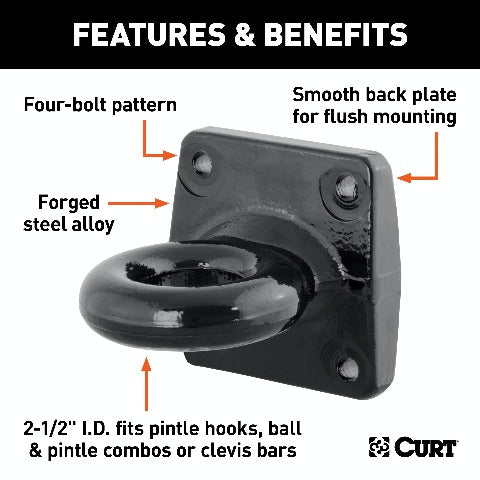 CURT 48550 Black Steel Pintle Hitch Lunette Ring 2-1/2-Inch ID, 35,000 lbs, 4-1/2-Inch Bolt Pattern