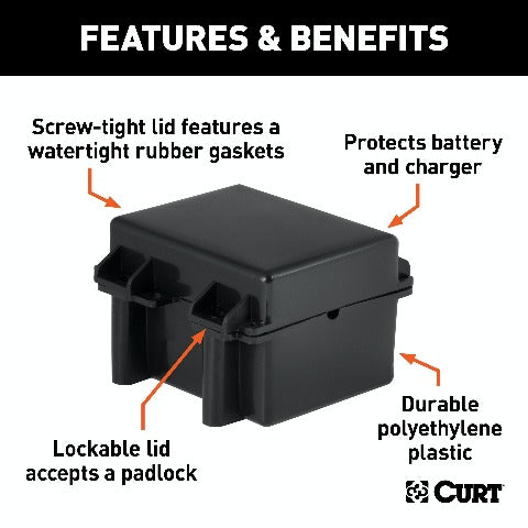 CURT 52027 5-Inch x 3-3/8-Inch x 3-3/4-Inch Watertight Trailer Breakaway Battery Case