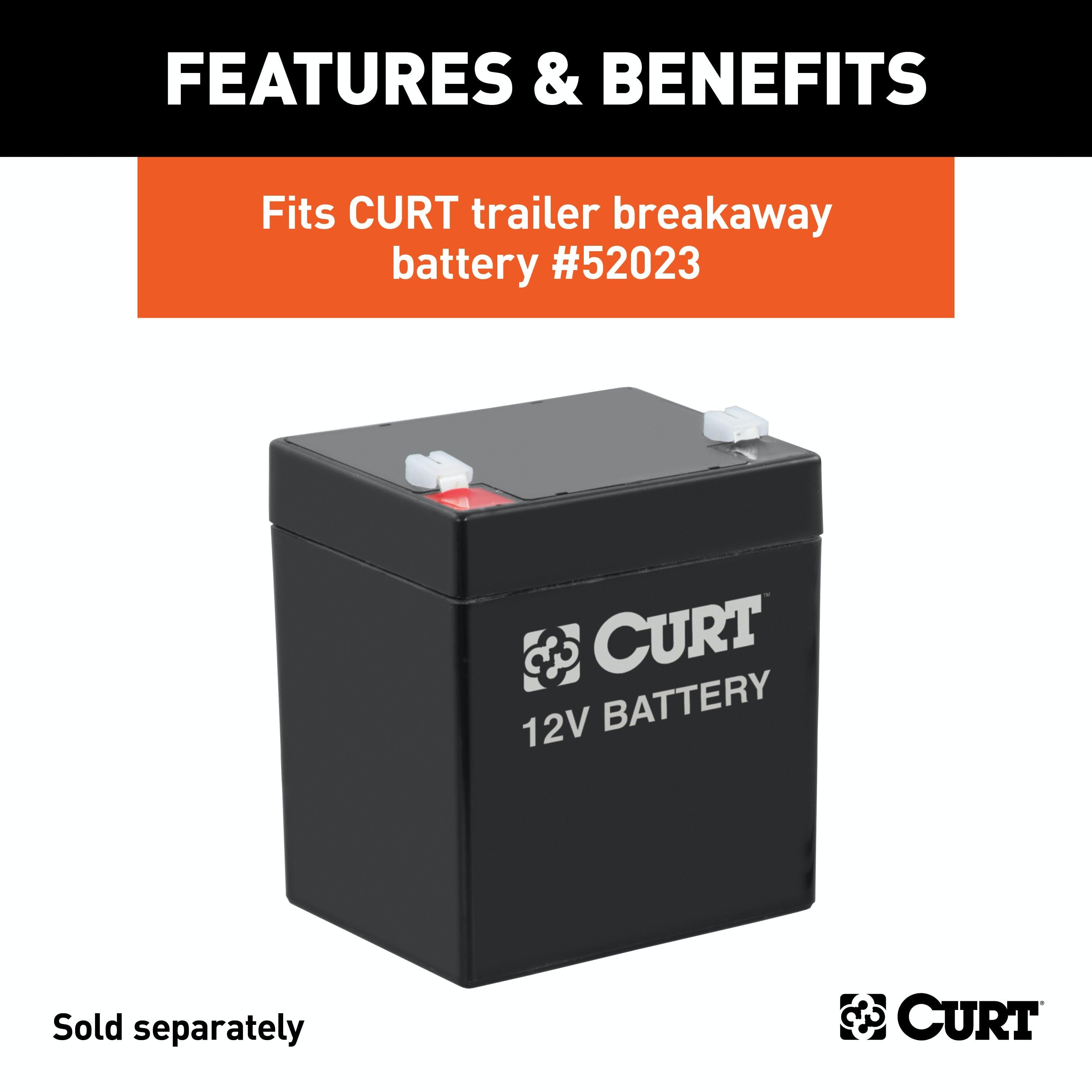 For any and all types of trailers with electric trailer brakes, a CURT breakaway kit provides you with the equipment you need to be prepared. We offers three different complete breakaway systems to accommodate various trailer sizes and meet your specific towing needs. All of our breakaway kits are tested for your safety and meet DOT requirements for holding and breakaway situations. This replacement battery case for breakaway kits measures 5 wide, 3-3/8 high and 3-3/4 deep to fit a variety of breakaway batteries. It is constructed from durable polyethylene plastic to protect against the elements and features a watertight lid with a rubber gasket. This breakaway battery case is also equipped with a screw-tight lid for secure mounting on your trailer. Nobody hitches up a trailer expecting a breakaway, but that doesn't mean you should tow unprepared. Be ready for anything with a CURT breakaway kit.