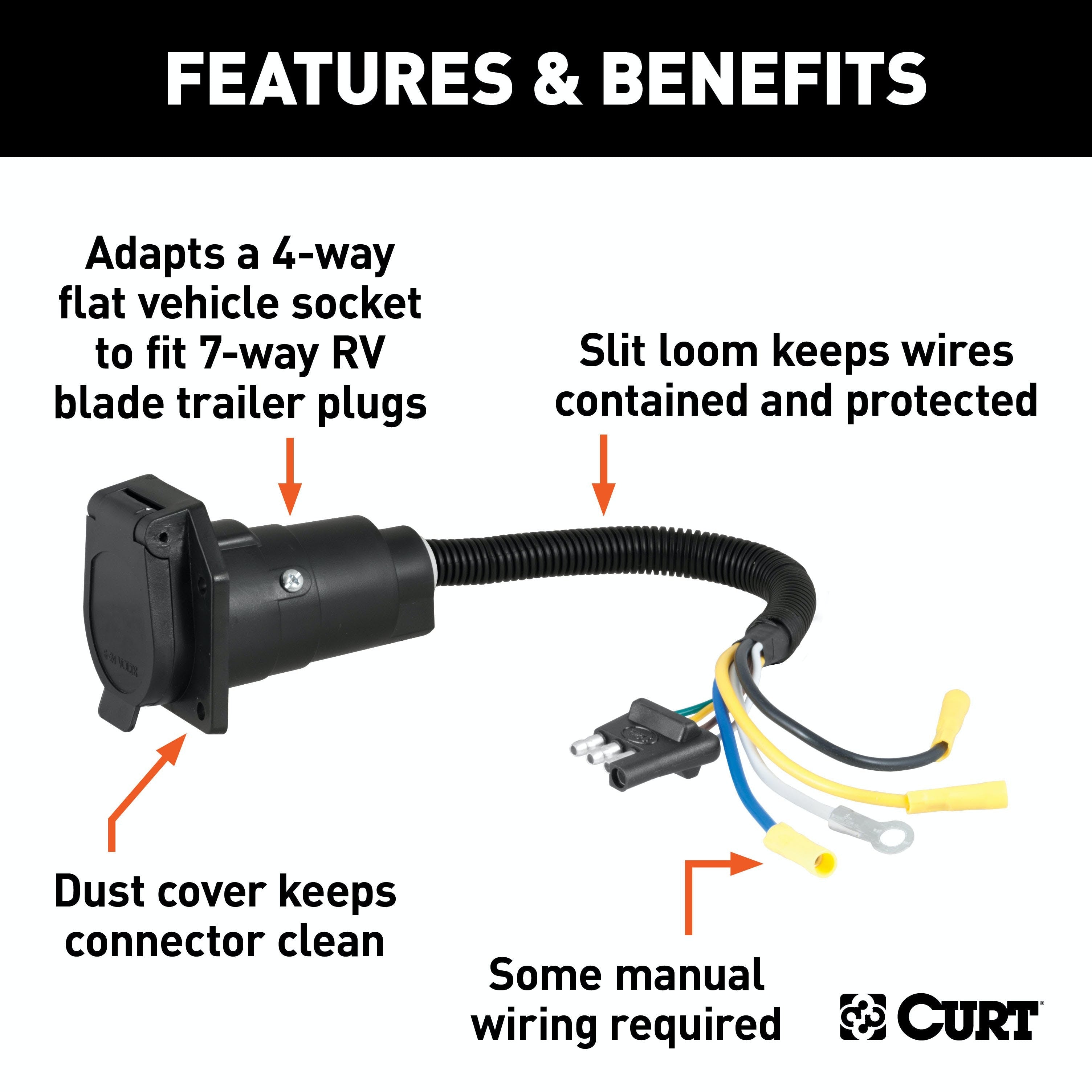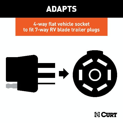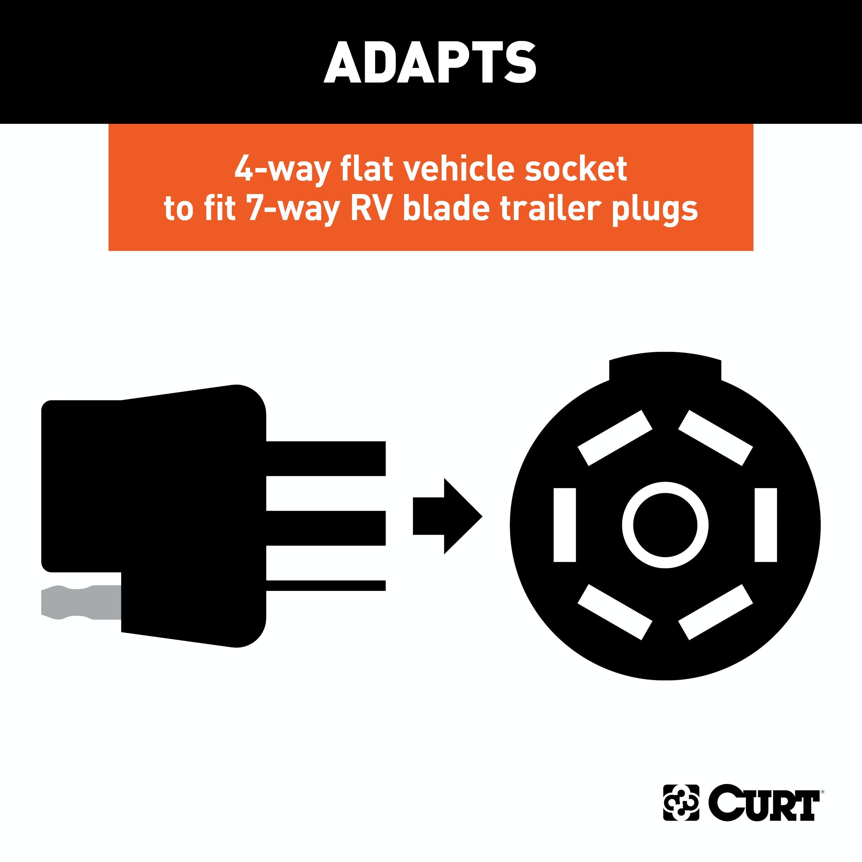 CURT 57184 4-Way Flat Vehicle-Side to 7-Way RV Blade Trailer Wiring Adapter