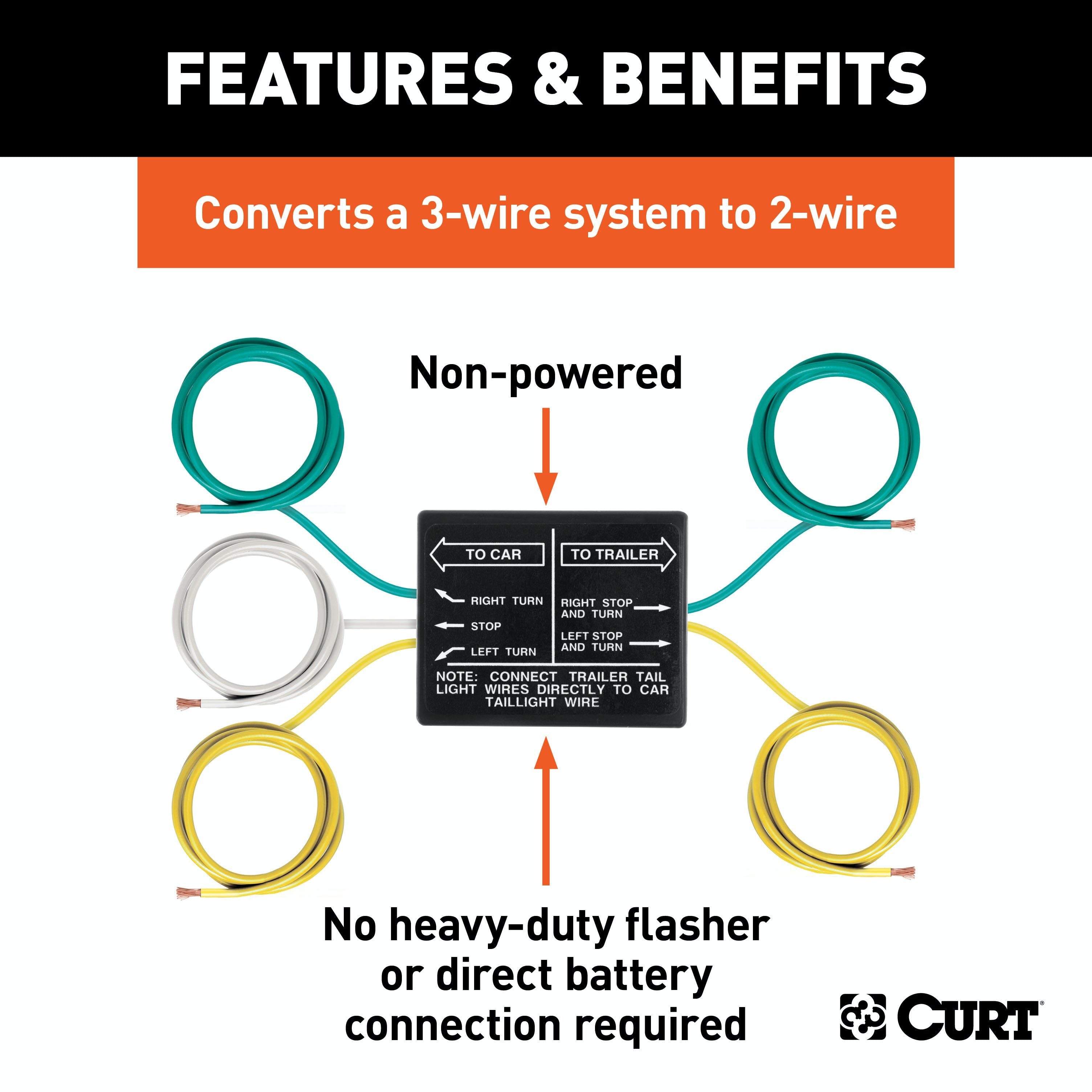 CURT 58240 Non-Powered 3-to-2-Wire Splice-in Tail Light Converter, Not Compatible with LED Lights