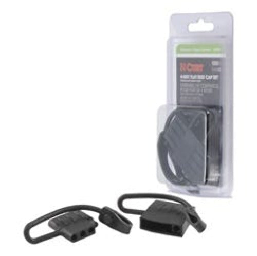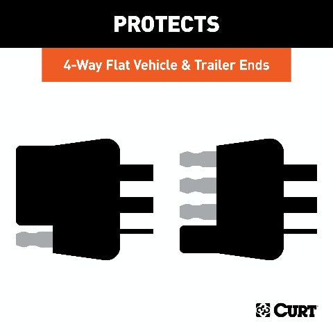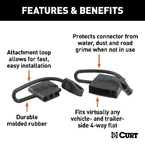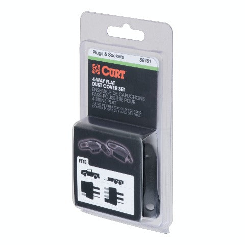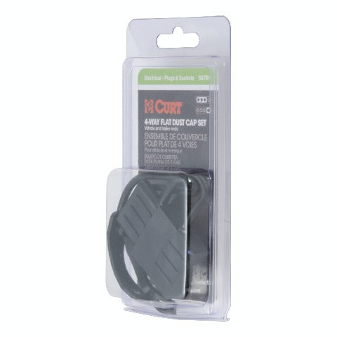 Like trailer hitches and ball mounts, electrical connectors range all over the board in shape, size and capability, but no matter what your trailer's electrical functions are, you need a solid connection to keep the power flowing and ensure safety on the road. CURT electrical connectors are designed and manufactured to give you a reliable connection every time you plug in your trailer. Protect your vehicle-to-trailer wiring connection with CURT electrical plug and socket covers. This set of 4-way flat dust covers features durable black rubber construction to easily resist the elements and maintain good connectivity. The covers come with convenient attachment tabs to avoid loss, and the kit includes both a vehicle-side socket cover and trailer-side plug cover.