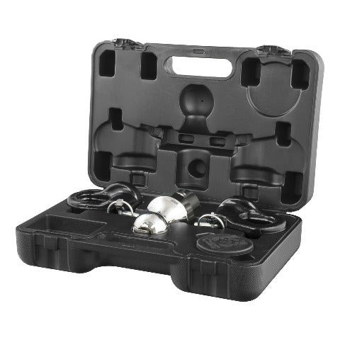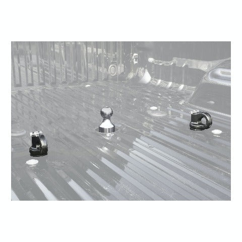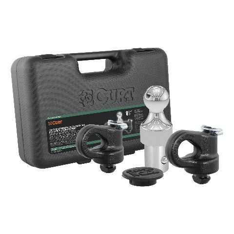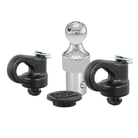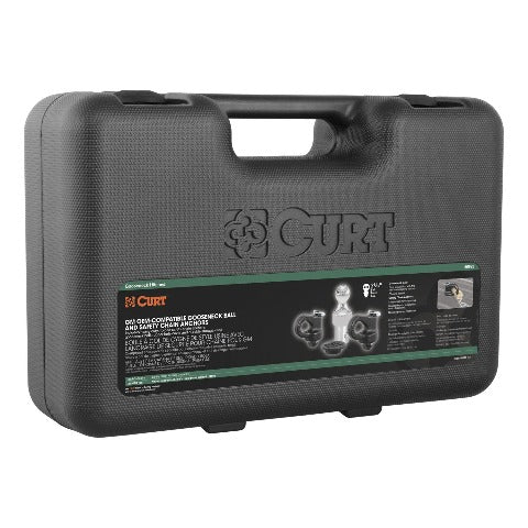 The components of this CURT 30K puck system gooseneck kit easily drop into the truck bed pucks, instantly equipping the truck for gooseneck towing. The kit includes a gooseneck ball, safety chain anchors, a rubber hole cover and a durable storage case. It fits select model years of the Chevrolet Silverado 2500 HD and 3500 HD, Ford F-250 and F-350 Super Duty, GMC Sierra 2500 HD and 3500 HD and Nissan Titan XD (see application info verify fitment). It is rated for 30,000 lbs. GTW and 7,500 lbs. vertical load. The OEM puck system gooseneck ball perfectly fits into the center ball hole and provides a 2-5/16 ball to fit most standard gooseneck trailers. It features with a patented installation system, operating with a simple quarter-turn latch lock for ease of use and a secure mount. Retention balls, built into the shank, keep the gooseneck ball fixed into the receiver hole and keep your trailer locked on tight. Also included in the kit are CURT OEM puck system gooseneck safety chain anchors. Like the gooseneck ball, these patented anchors are made specifically for Chevrolet, Ford, GMC or Nissan Titan XD pickup trucks with the puck system and provide a reliable connection for your gooseneck trailer. They feature a simple drop-in installation system with no tools required, and they offer large safety chain loops to accept heavy-duty clevis hooks. These safety chain anchors are constructed from heavy-duty, cast steel and have a highly durable powder coat finish. Finally, this gooseneck puck system kit includes a tough rubber hole cover to keep water, dirt, grime and rust out of the gooseneck ball hole. The cover installs with a friction fit and helps extend the life of your gooseneck hitch. We also include a durable plastic storage case with each kit to keep the components protected and together for easy storage. The case can be stored inside your truck or truck bed tool box to keep the ball and anchors on-hand whenever you need them.